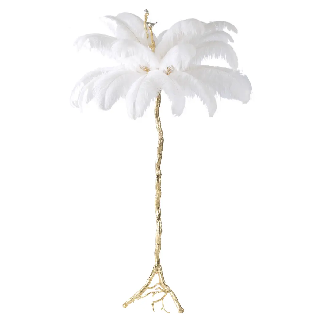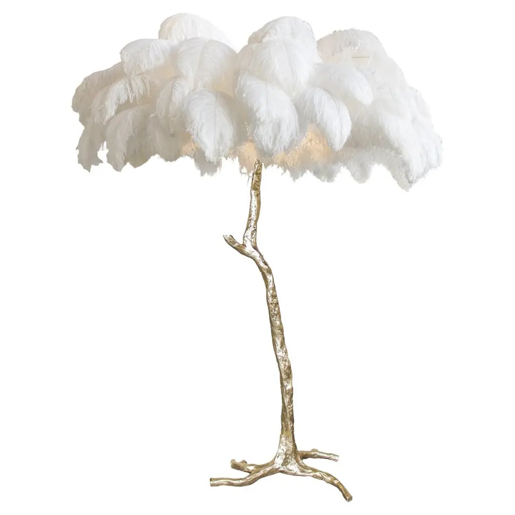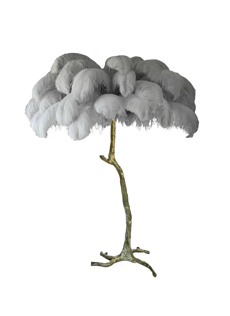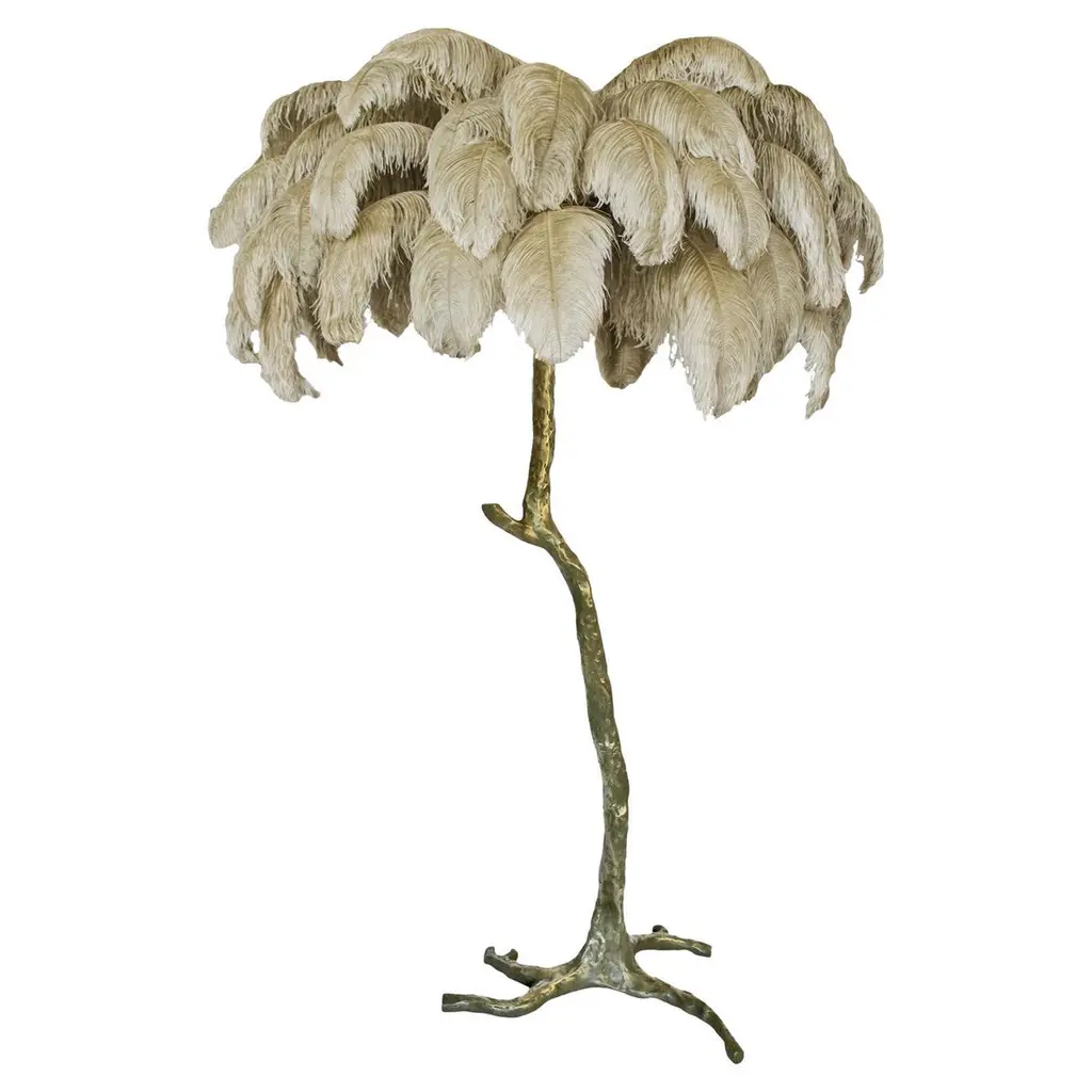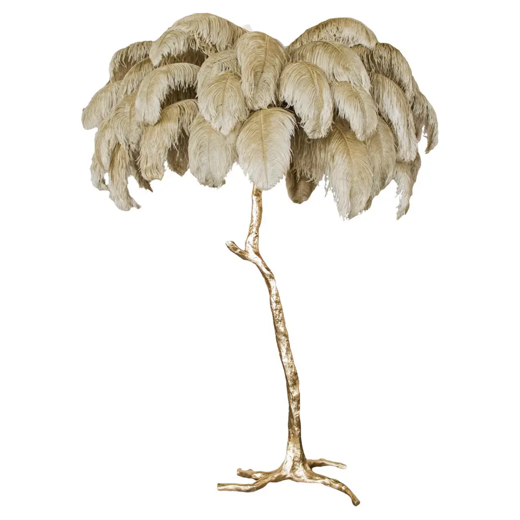 The Feather floor lamp, edition piece by A Modern Grand Tour.An illuminating palm tree, resplendent with exquisite ostrich feather foliage, the feather floor lamp takes centre stage in any luxury setting and delivers the ultimate midas touch to Hollywood regency decors. A pièce de résistance among standing lamps, this lighting work of art commands attention to its exquisite design and intricate craftsmanship.