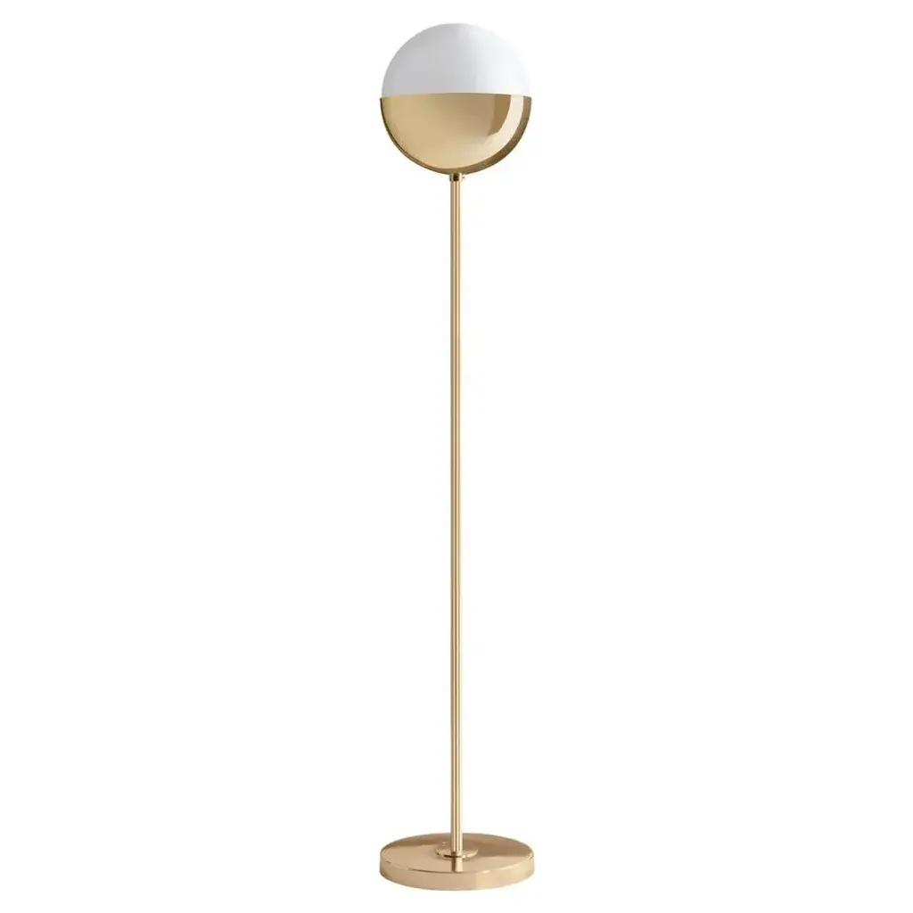 Brass floor lamp 01 by Magic Circus Editions Dimensions: D 25 x H 150 cm Materials: Brass base, smooth brass tube, glossy mouth blown glass Dimmable version available. Rethinking, reimagining, redesigning familiar objects that we look at every day without ever really seeing them and using light to tell stories, this how Marie-Lise Féry sees her work. Up to 250V (Europe/UK Standard).