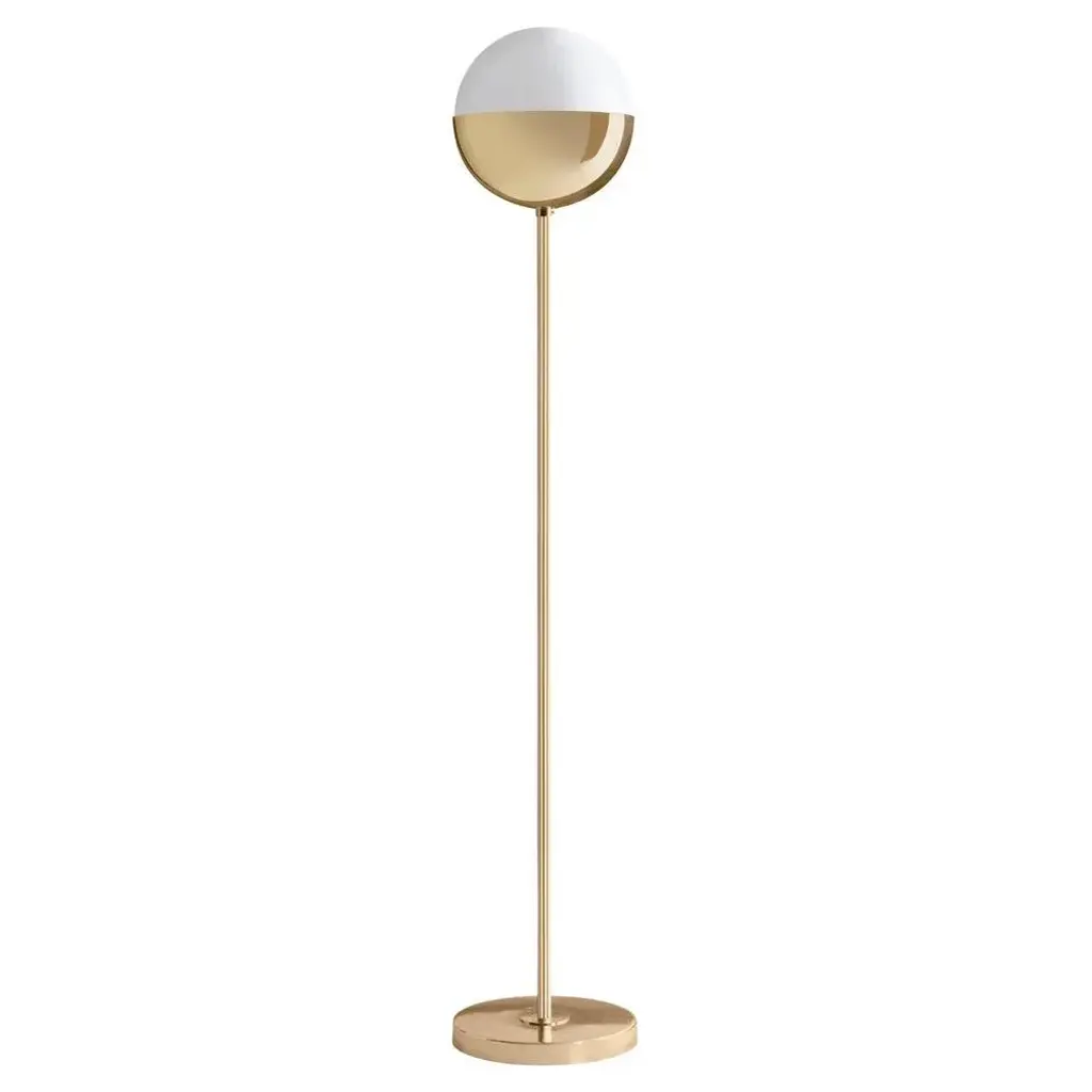 Brass floor lamp 01 by Magic Circus Editions Dimensions: D 25 x H 160 cm Materials: Brass base, smooth brass tube, glossy mouth blown glass Dimmable version available. Rethinking, reimagining, redesigning familiar objects that we look at every day without ever really seeing them and using light to tell stories, this how Marie-Lise Féry sees her work. Offering a new take on our urban heritage, changing our perspective through her work on scale and usage. Up to 250V (Europe/UK Standard).