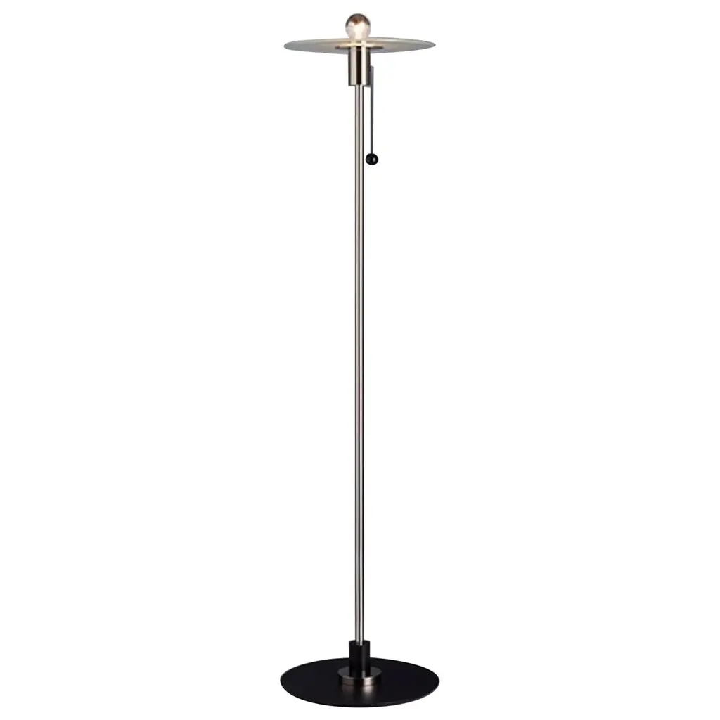 Embodying timeless elegance with industrial edge, the Auriol Floor Lamp by Versmissen adds a refined yet bold statement to any setting. Crafted from brass, this lamp is available in antique black or antique brass finishes. Its flat, circular shade defines a classic silhouette that blends with contemporary interiors. This fixture, reminiscent of vintage industrial style, becomes a standout piece in spaces craving a touch of sophistication.