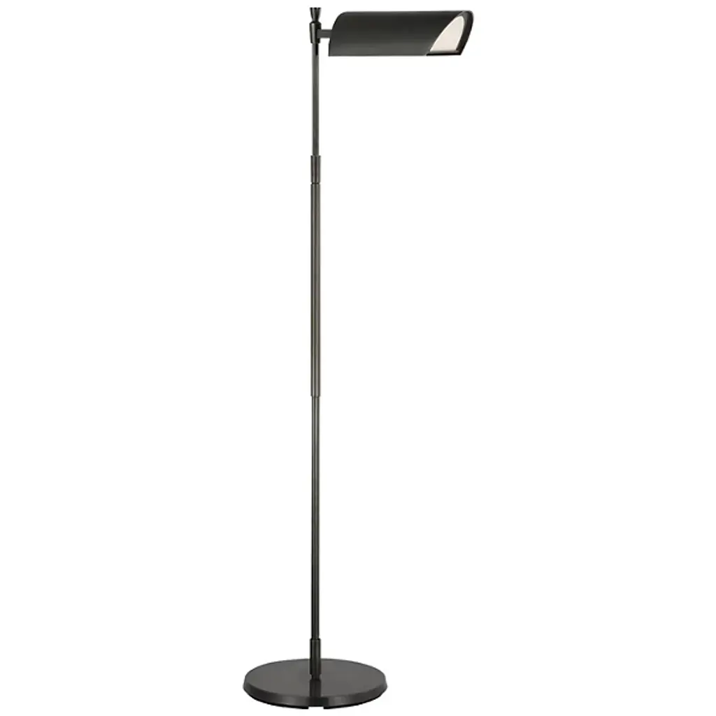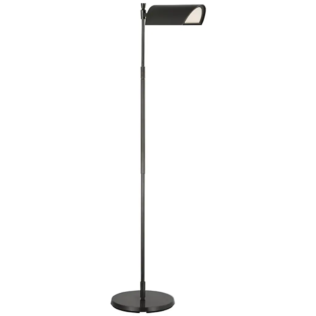 Illuminate your space with the Bravo Floor Lamp from Visual Comfort Signature's simple design and elegant curves. Designed by the talented Thomas O'Brien, this slender, striking piece masterfully combines a brass frame with a beautiful glass shade in a curving hood with a beveled end, creating a harmonious balance between modern and traditional styles. A dimmer socket switch makes the light effortlessly adjustable, creating the perfect ambiance for any occasion.