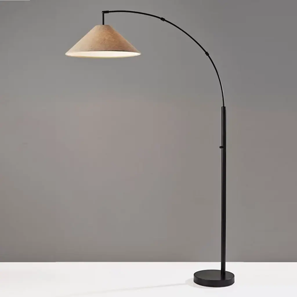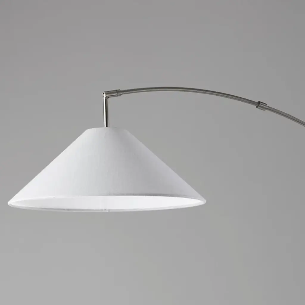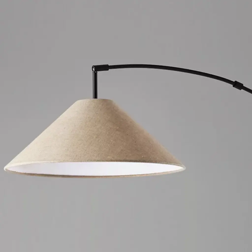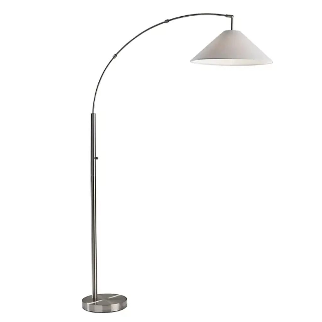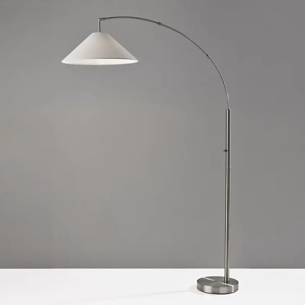 Sleek and stylish, the Braxton Arc Floor Lamp from Adesso adds a clean and appealing silhouette to the rooms of your modern home. Made of smooth metal throughout, this piece starts with a thick and round base that upholds a long and thin matching body. The body turns into a curved stem that holds out a conical shade and a single crisp bulb within. The light from the bulb is bright and even, washing the immediate area in welcoming light.