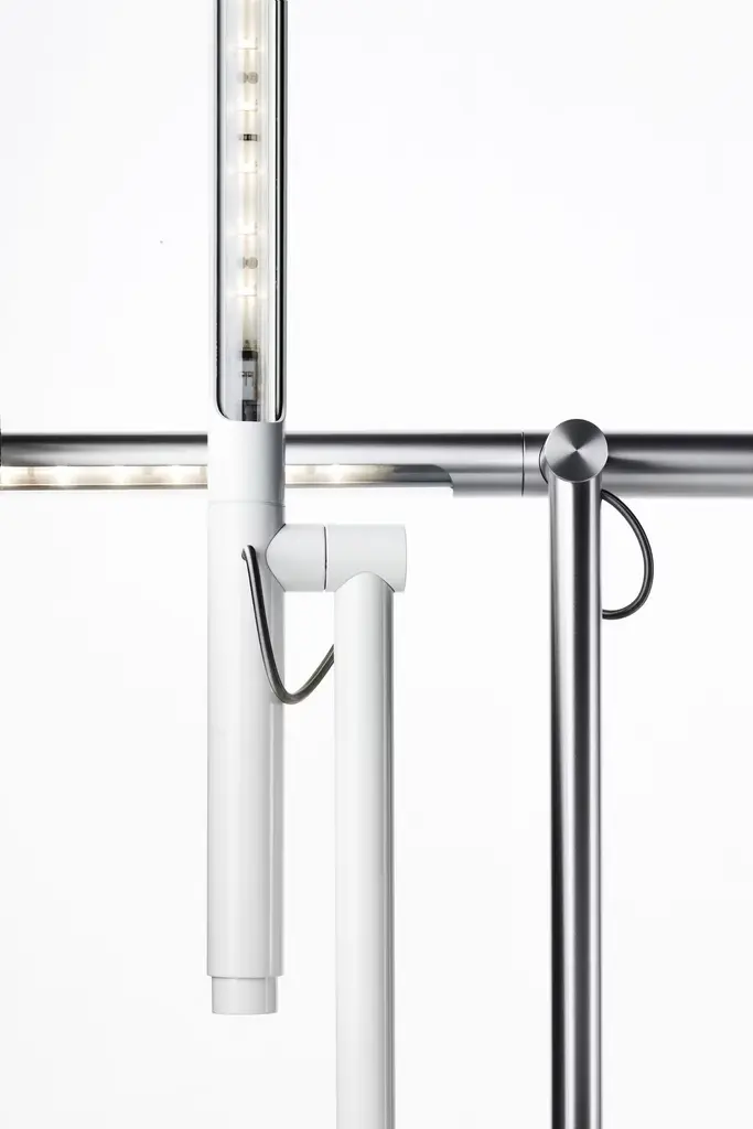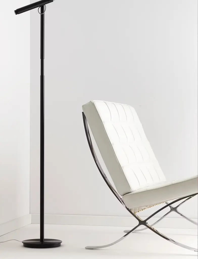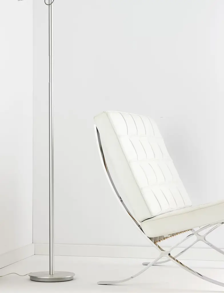 Crafted from recyclable aluminum, Pablo Pardo's innovative Brazo Floor Lamp (2006) was the first LED task light to feature an optical film lens for focus control, providing both a variable beam spread and focused directional light. Brazo's top arm lets you turn an outer aluminum layer over the white LEDs to focus the light as much or as little as desired. This energy-efficient lighting solution is 97% recyclable. Bulb (included): 18-LED array. Made in China.