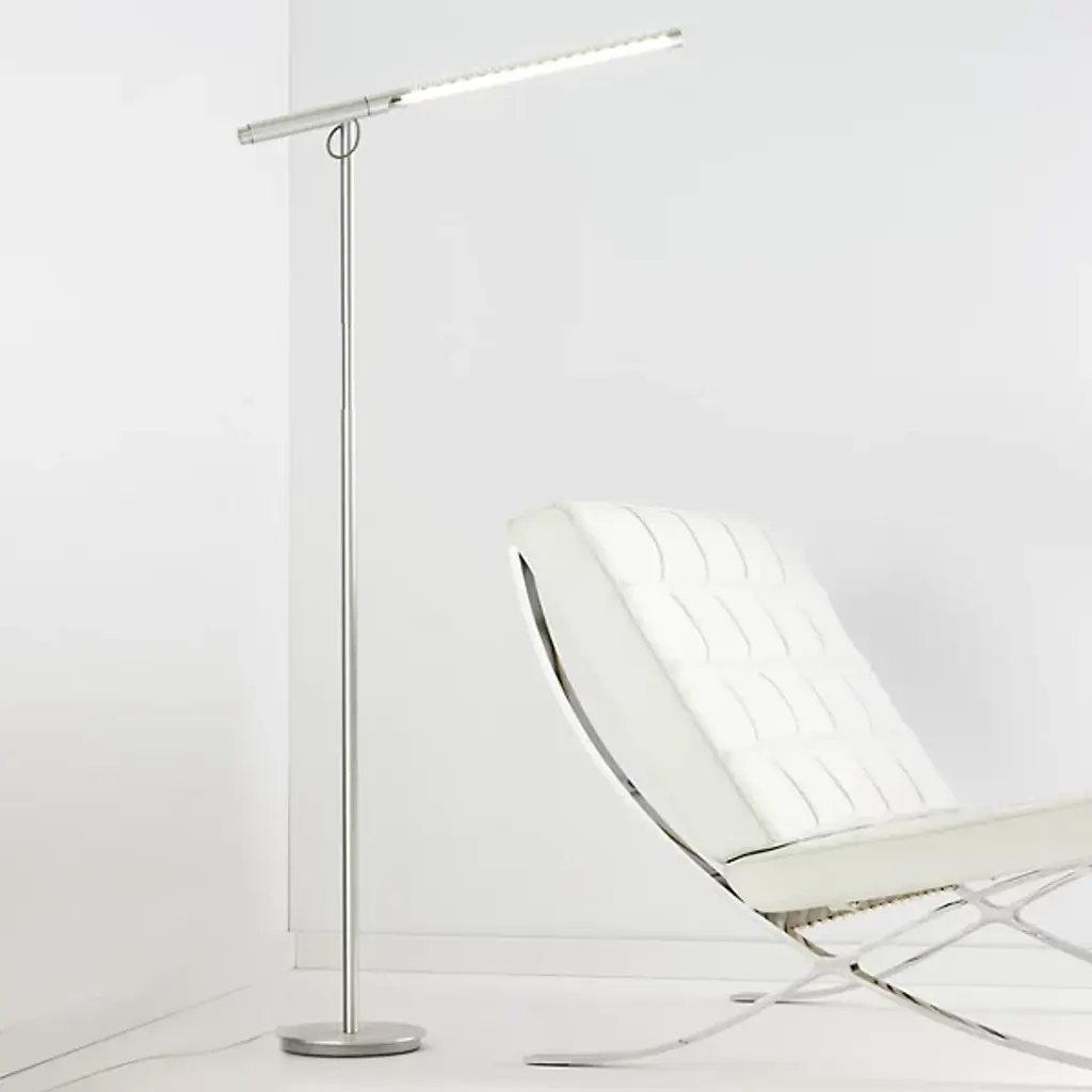 A particularly smart LED floor lamp. The lamp's precision-machined aluminum construction allows for optimal task-lighting control with 360-degree adjustability. The Pablo Brazo Floor Task Lamp features an energy-efficient LED light source which can be dialed to any desired beam spread and brightness depending on the task.