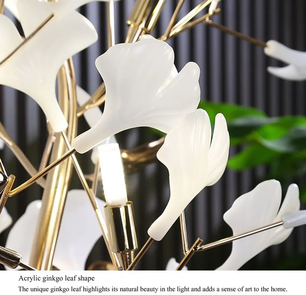 IIntroducing the stunning ginkgo leaves shaped floor lamp, a masterpiece of creative design that will elevate your home lighting experience to new heights. This exquisite LED floor lamp is not just a source of light; it''s a work of art that adds a touch of elegance and sophistication to any room.Crafted with precision and attention to detail, this floor lamp features a unique design inspired by the delicate and graceful form of ginkgo leaves. The intricate metalwork creates a mesmerizing pattern that casts a beautiful and enchanting glow, transforming your space into a haven of beauty and tranquility.Product parameters:Material: Polished metal, PVC, MarbleSize: Dia60xH170cm / Dia23.6xH66.9"Light source: G9 LED BulbsEmitting color: Warm light (3000K)Voltage: AC110V - 240VWattage: Non-DimmableIs Bulbs Included: YesApplicable area: 10-15 sq.mUL Certified: YESApplication: Living Room, Dining Room, Kitchen Island, Office, Bedroom, Staircase, Hall, Lobby, Restaurant, BarReminder! Save products as favorites and put them in your shopping cart so as not to lose them.Our Advantages-Top-quality-Unique products, production of non-standard models-Perfect balance of price-quality-warranty-24/7 customer service-Flexible custom production of any size/color-Constant updating of the assortment-Free Express delivery, easy returns.MIRODEMI is the premier retailer of luxury products for home decor and renovation, which will ensure the uniqueness of any interior by providing a combination of stylish shape and innovative technology. We will be glad to cooperate with Interior Designers, Builders, Architects in the field of realizing the exclusive fabulous projects.Go to our store page to see all the latest collections of lighting, furniture and home decor for any budget and space of your sweet home: kitchen, dining room, living room, bedroom, bathroom, staircase, loft, hall, foyer. Become a follower not to miss new items and don''t forget to save your favorite products in order not to lose them. Happy shopping with MIRODEMI.