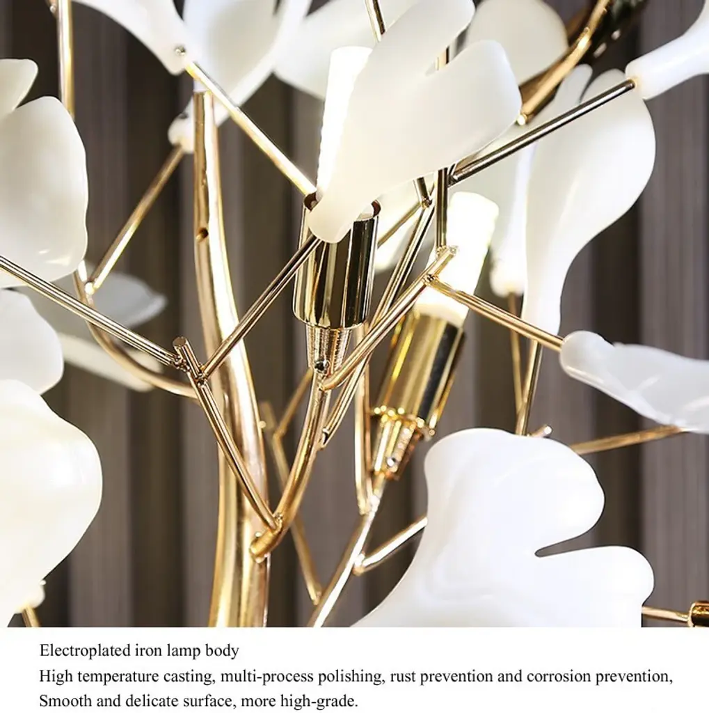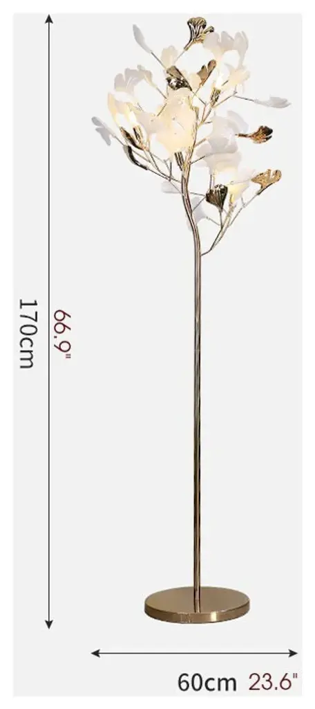 IIntroducing the stunning ginkgo leaves shaped floor lamp, a masterpiece of creative design that will elevate your home lighting experience to new heights. This exquisite LED floor lamp is not just a source of light; it''s a work of art that adds a touch of elegance and sophistication to any room.Crafted with precision and attention to detail, this floor lamp features a unique design inspired by the delicate and graceful form of ginkgo leaves. The intricate metalwork creates a mesmerizing pattern that casts a beautiful and enchanting glow, transforming your space into a haven of beauty and tranquility.Product parameters:Material: Polished metal, PVC, MarbleSize: Dia60xH170cm / Dia23.6xH66.9"Light source: G9 LED BulbsEmitting color: Warm light (3000K)Voltage: AC110V - 240VWattage: Non-DimmableIs Bulbs Included: YesApplicable area: 10-15 sq.mUL Certified: YESApplication: Living Room, Dining Room, Kitchen Island, Office, Bedroom, Staircase, Hall, Lobby, Restaurant, BarReminder! Save products as favorites and put them in your shopping cart so as not to lose them.Our Advantages-Top-quality-Unique products, production of non-standard models-Perfect balance of price-quality-warranty-24/7 customer service-Flexible custom production of any size/color-Constant updating of the assortment-Free Express delivery, easy returns.MIRODEMI is the premier retailer of luxury products for home decor and renovation, which will ensure the uniqueness of any interior by providing a combination of stylish shape and innovative technology. We will be glad to cooperate with Interior Designers, Builders, Architects in the field of realizing the exclusive fabulous projects.Go to our store page to see all the latest collections of lighting, furniture and home decor for any budget and space of your sweet home: kitchen, dining room, living room, bedroom, bathroom, staircase, loft, hall, foyer. Become a follower not to miss new items and don''t forget to save your favorite products in order not to lose them. Happy shopping with MIRODEMI.