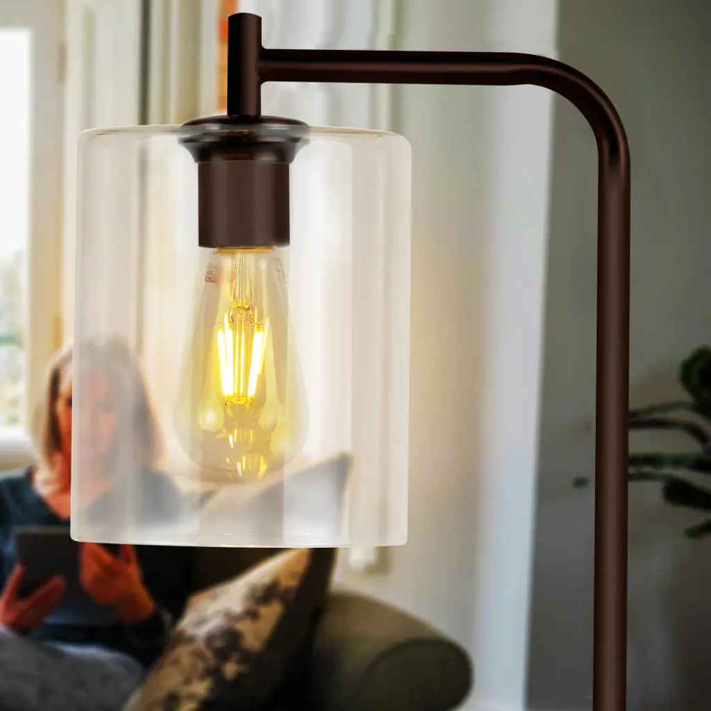 Brightech Elizabeth Industrial Floor Lamp With Glass Shade & Edison Bulb, Bronze
