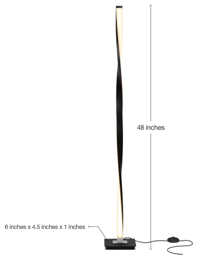 MODERN, SHADE-FREE POLE LAMP FOR LIVING ROOMS EARNS COMPLIMENTS: The unique, elegant style of this modern floor lamp impresses guests and starts conversations. The gently twisting fixture stands up about 48" tall.STANDING, 3 WAY DIMMABLE LAMP ENHANCES A BEDROOM AND STAYS COOL: The Helix has a built-in foot pedal dimmer switch. Use the dimming for a bedside night light or the highest setting for bright lighting (~1400 lumens) in the office. Safe also in kids'' rooms because it is light, so even if knocked over (there''s a weighted base, but still), your child will barely be scratched. And LEDs barely generate heat, not raising bedroom temperatures and staying cool to the touch.VERSATILE STANDUP LIGHT MATCHES RANGE OF DECOR: Put this upright, free-standing lamp beside a couch or place the poll next to a stately desk - it''ll feel equally at home in both. Pair it with urban, contemporary, minimalistic, or futurist/ultra-modern decor.20 YEAR LIFE WARM WHITE LED LIGHT BUILT-IN: This Brightech lamp includes a built-in LED light rated to last 20,000 hours, which works out to a 20-year life with normal use (about 3 hours/day). You never have to replace a bulb and save 90% on your electric bill in comparison to halogen or incandescent bulbs, because LED doesn''t waste lots of energy by producing heat. This also avoids accidental burns if you brush the light.BRIGHTECH''S 3 YEAR PRODUCT WARRANTY: We proudly stand behind all of our products 100%, which is why we offer a full 3-year warranty. If your lamp has any defect or stops working within 3 years, we help you troubleshoot and/or send replacement parts or a whole new product. If any problems arise, please contact us because our number one goal is customer satisfaction and we are committed to making it right for you.