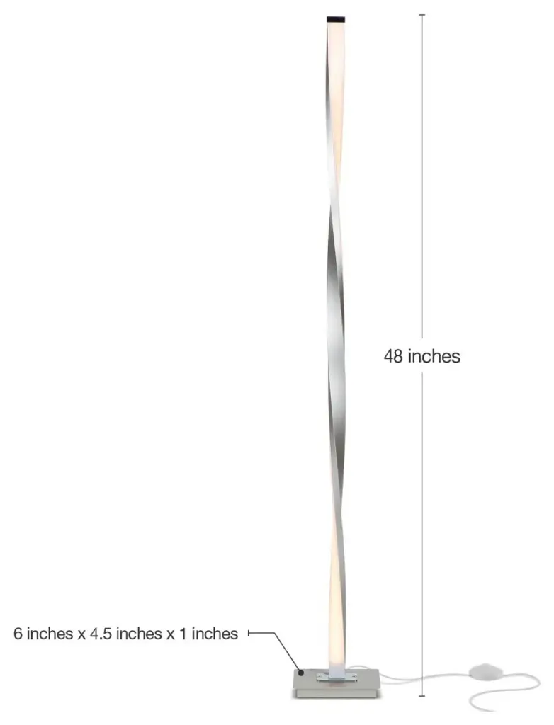 MODERN, SHADE-FREE POLE LAMP FOR LIVING ROOMS EARNS COMPLIMENTS: The unique, elegant style of this modern floor lamp impresses guests and starts conversations. The gently twisting fixture stands up about 48" tall.STANDING, 3 WAY DIMMABLE LAMP ENHANCES A BEDROOM AND STAYS COOL: The Helix has a built-in foot pedal dimmer switch. Use the dimming for a bedside night light or the highest setting for bright lighting (~1400 lumens) in the office. Safe also in kids'' rooms because it is light, so even if knocked over (there''s a weighted base, but still), your child will barely be scratched. And LEDs barely generate heat, not raising bedroom temperatures and staying cool to the touch.VERSATILE STANDUP LIGHT MATCHES RANGE OF DECOR: Put this upright, free-standing lamp beside a couch or place the poll next to a stately desk - it''ll feel equally at home in both. Pair it with urban, contemporary, minimalistic, or futurist/ultra-modern decor.20 YEAR LIFE WARM WHITE LED LIGHT BUILT-IN: This Brightech lamp includes a built-in LED light rated to last 20,000 hours, which works out to a 20-year life with normal use (about 3 hours/day). You never have to replace a bulb and save 90% on your electric bill in comparison to halogen or incandescent bulbs, because LED doesn''t waste lots of energy by producing heat. This also avoids accidental burns if you brush the light.BRIGHTECH''S 3 YEAR PRODUCT WARRANTY: We proudly stand behind all of our products 100%, which is why we offer a full 3-year warranty. If your lamp has any defect or stops working within 3 years, we help you troubleshoot and/or send replacement parts or a whole new product. If any problems arise, please contact us because our number one goal is customer satisfaction and we are committed to making it right for you.