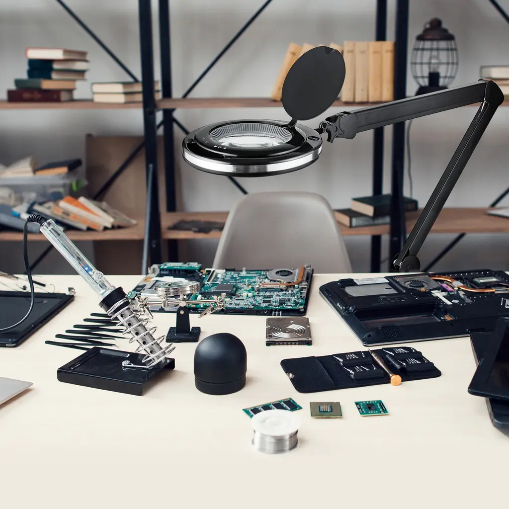 The Brightech Lightview Pro Magnifying Floor Lamp is the ideal hands-free lamp for close work. Mobile and adjustable along three hinges, with a 55-inch max height, it's the perfect work light for estheticians, spas and salons, beauticians, dermatologists, tattoo artists, jewelers, dentists, and hobbyists. Available in Black, this dimmable magnifying floor lamp is capable of 1.75X magnification for items in focus at a distance of 13 inches. It comes with built-in 800 lumen, 9W LED lights and can last up to 20,000 hours when used up to 3 hours a day. The LightView Pro offers a genuine 3" diopter magnifying glass, which means it won't bend and warp over time, and it's resistant to heat and scratches. With 6 wheels, it's mobile and functional, perfect for professionals utilizing both hands. The Brightech LightView Pro is a must for any home office or workplace. Brightech 3-Year Product Warranty: We proudly stand behind all of our sales and offer an industry-leading 3-year warranty on our sales. This will cover if the lamp stops working within 3 years or if there are any defects within those 3 years.