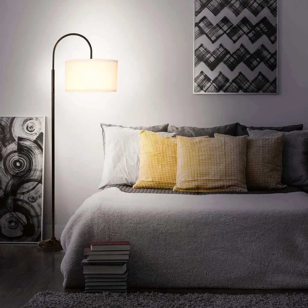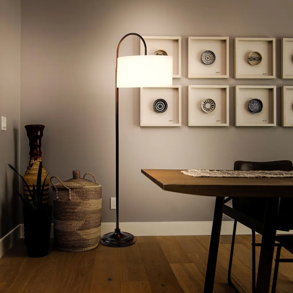 Transform your living space with the Brightech Nora Bright Arc Tall Lamp. This contemporary LED floor lamp is perfect for any living room, office, or bedroom, and features a sleek black finish and adjustable pole that extends from 68-75 inches. The Nora's soft linen drum-style shade diffuses light evenly throughout any space, creating a warm and inviting atmosphere. This standing floor lamp is also compatible with smart home devices like Alexa, Google Home Assistant, and Apple HomeKit, and comes with a built-in 9.5 Watt, 800 lumen LED bulb that is guaranteed to last 20,000 hours of 3,000K white light. Plus, the Nora is both energy-saving and cost-effective, and its wide weighted base makes it a great addition to any child's bedroom. With its modern design, this tall lamp pairs nicely with any traditional, vintage, minimalist, mid-century modern, or urban decor. And with Brightech's 3-Year Product Warranty, you can be sure that your lamp is covered if it stops working within 3 years or if there are any defects within those 3 years.