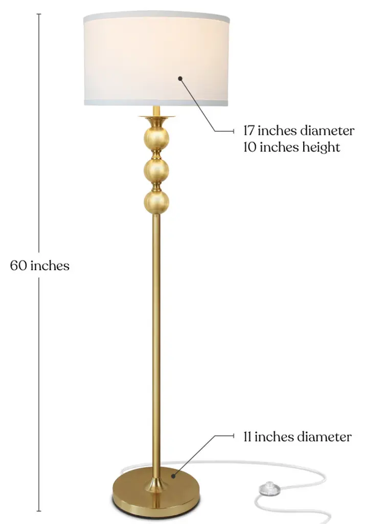MODERN DESIGN THAT LOOKS GREAT WITH ANY DECORThe Brightech Riley LED Floor Lamp has a unique design that makes it an eye catching conversation piece. Its warm light and elegant style make it a perfect match for modern, contemporary, art deco, mid century modern, and other decor schemes.The warm brass finish on the pole and base pairs well with the neutral linen lamp shade. Its sophisticated form and relaxing, shaded light make the Riley floor lamp an exceptional choice for any home or office.WARM LIGHT FOR HOME & OFFICE IS SMART HOME (ALEXA, ECHO, GOOGLE HOME, APPLE ETC) COMPATIBLE: This lamps warm beautiful light creates a comfortable and well-lit space for any indoor room. For added convenience, you can control the lamp via wall switch and smart devices like the Echo from Amazon Alexa, Apple Home Kit with Siri, and Google Home Assistant devices. (Requires a smart plug, sold separately.)STURDY LAMP WITH WEIGHTED BASE - FREE STANDING UPLIGHT IS SAFE IN KIDS ROOMS, GUEST ROOMS & NEAR PETS: Boys and girls'' bedrooms, as well as guest rooms, can see a lot of motion, but the risk of knocking the Brightech Riley over and someone getting hurt is quite small. The heavy base reduces the chance of tipping, as does the weight-height ratio (5 foot tall Riley is better in comparison to taller lamps). These sturdy features reflect the quality of this lamp''s design.20 YEAR LIFE WARM WHITE LED BULB INCLUDED: This Brightech lamp includes a 9.5-watt LED bulb rated to last 20,000 hours, which works out to a 20 year life with normal use (about 3 hours / day). You never have to replace a bulb and save 90% on your electric bill in comparison to halogen or incandescent bulbs, because LED doesn''t waste lots of energy by producing heat. This also avoids accidental burns if you brush the light. Product is UL listed.BRIGHTECH''S 3 YEAR PRODUCT WARRANTY: We proudly stand behind all of our products 100% and offer a full 3 year warranty. This will cover if the product stops working within 3 years or if there are any defects within those 3 years.