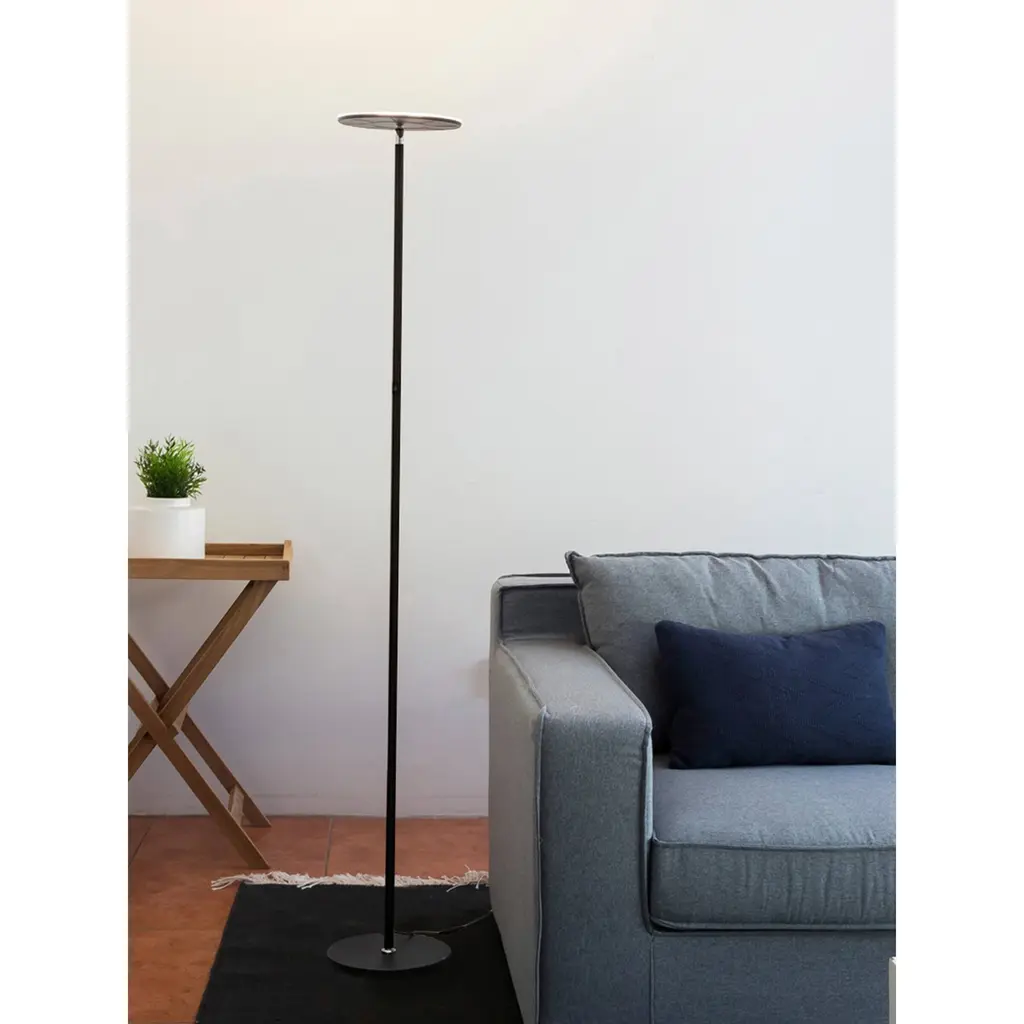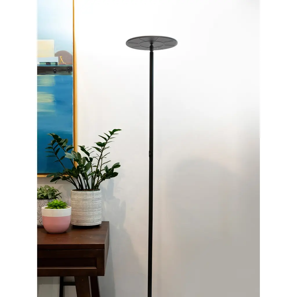 One of our most popular lamps, Brightech's Sky Flux LED Torchiere Floor Lamp is perfect for any room with its' integrated LED light that pivots and shines light in any direction you need. Featuring a very high 2700-Lumens, Brightech's Sky is enough to light a large room! This pole lamp stands 67" tall, featuring a sturdy base and a shade 10" in diameter. Choose your preferred color temperature at 3,000K Warm White, 4,000K Soft White or 5,000K Daylight White. The 3 way dimmer then allows you to easily adjust the brightness with the touch of a finger to achieve the perfect lighting for your space.This slender lamp slides unobtrusively into narrow corners, and the base fits beneath your sofa. Brightech Sky's unique design matches modern, minimalist, urban, casual, and contemporary décor, perfect for your bedroom, office, or study.