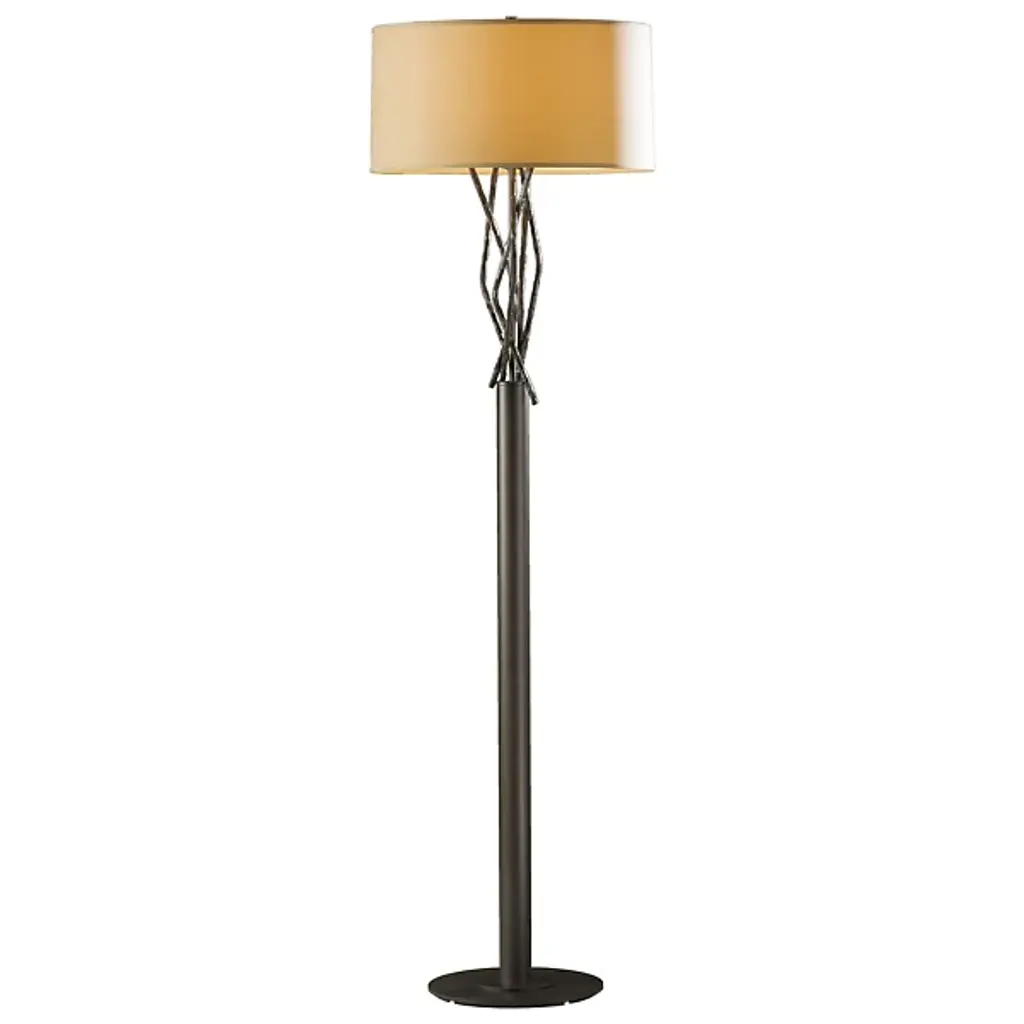 Sylvan meets steel with multi-faceted "twigs" forged from red-hot round bar stock hammered for texture and shape by our Vermont artisans. The steel sculpture sprouts and curves up from the stand before coming to a rest screened by the shade.