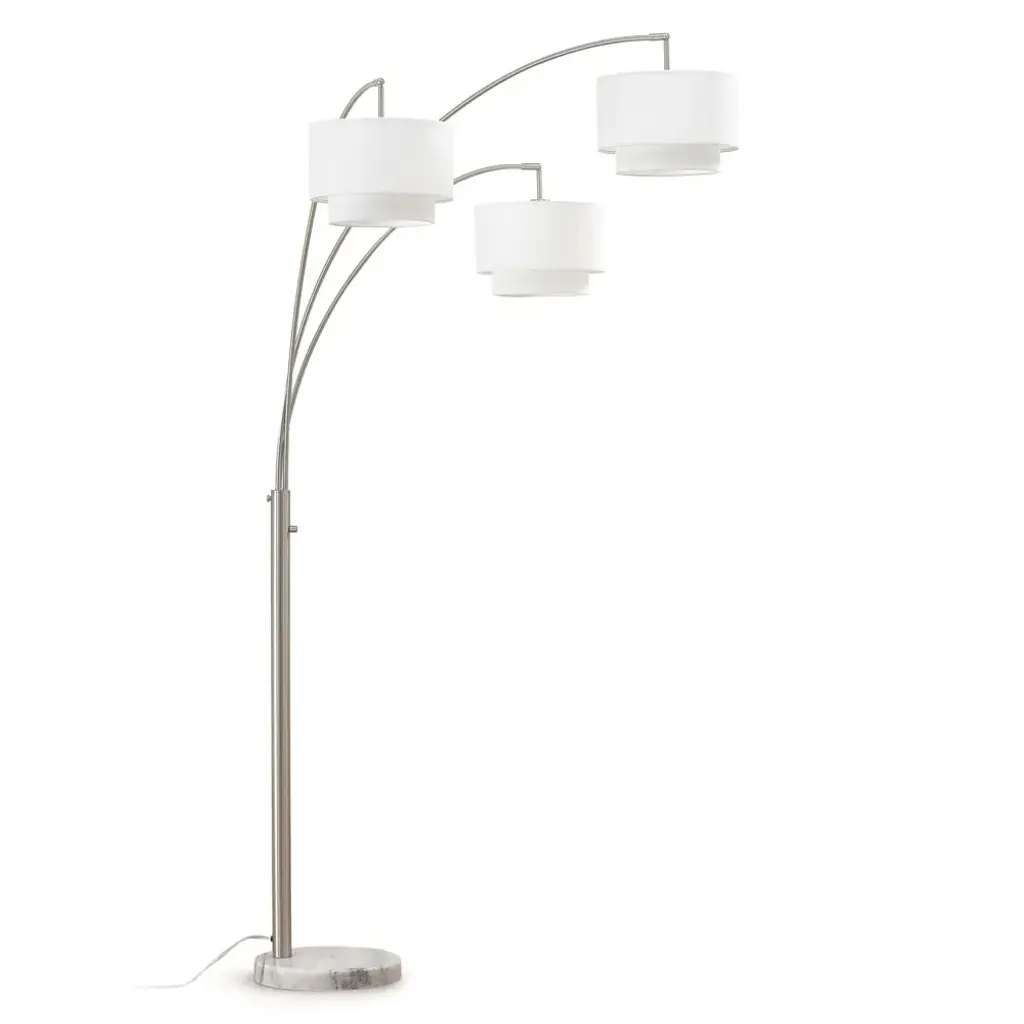 Broadway 3-Light 4-Way Switch Arch Floor Lamp - Brushed Nickel/white Shades