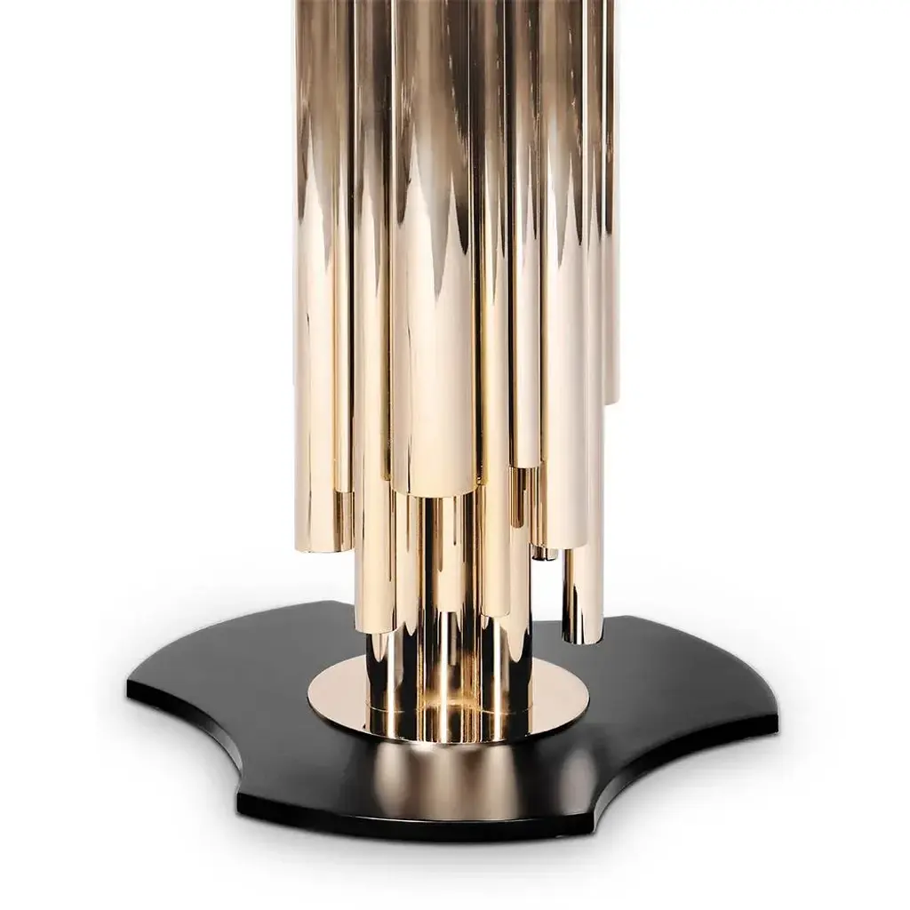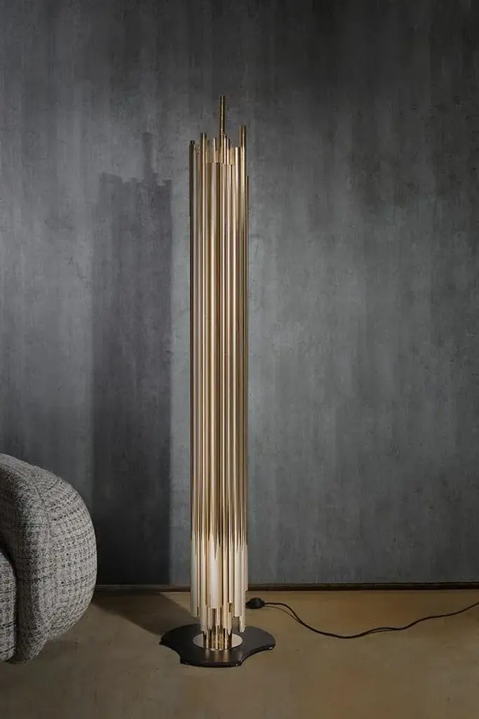 Dave Brubeck was the inspiration for one of DelightFULL’s more luxurious floor lamps. The art deco floor lamp represents in every single detail the way the jazz pianist musician blended very demanding rhythmic structures with improvisation in expressive and accessible ways. Therefore, in this lighting design, you can find asymmetrical gold plated tubes in order to attribute a contemporary lighting effect. European Plug (up to 250V).