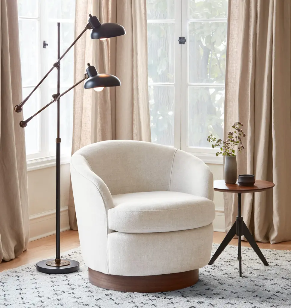 With a curved shade and functional details, the Bruno embodies industrial design from 1930s Europe. An adjustable arm offers optimal task lighting, complete with two elegant finish combinations to choose from. Steel On-off rotary switch sits on top of each shade Adjustable nuts on the stem allow you to tweak the angle of each arm to suit your needs Imported