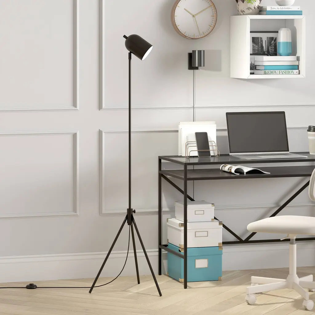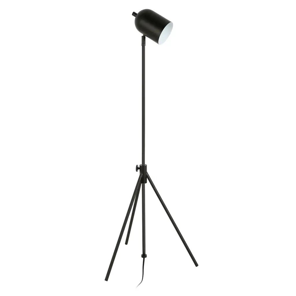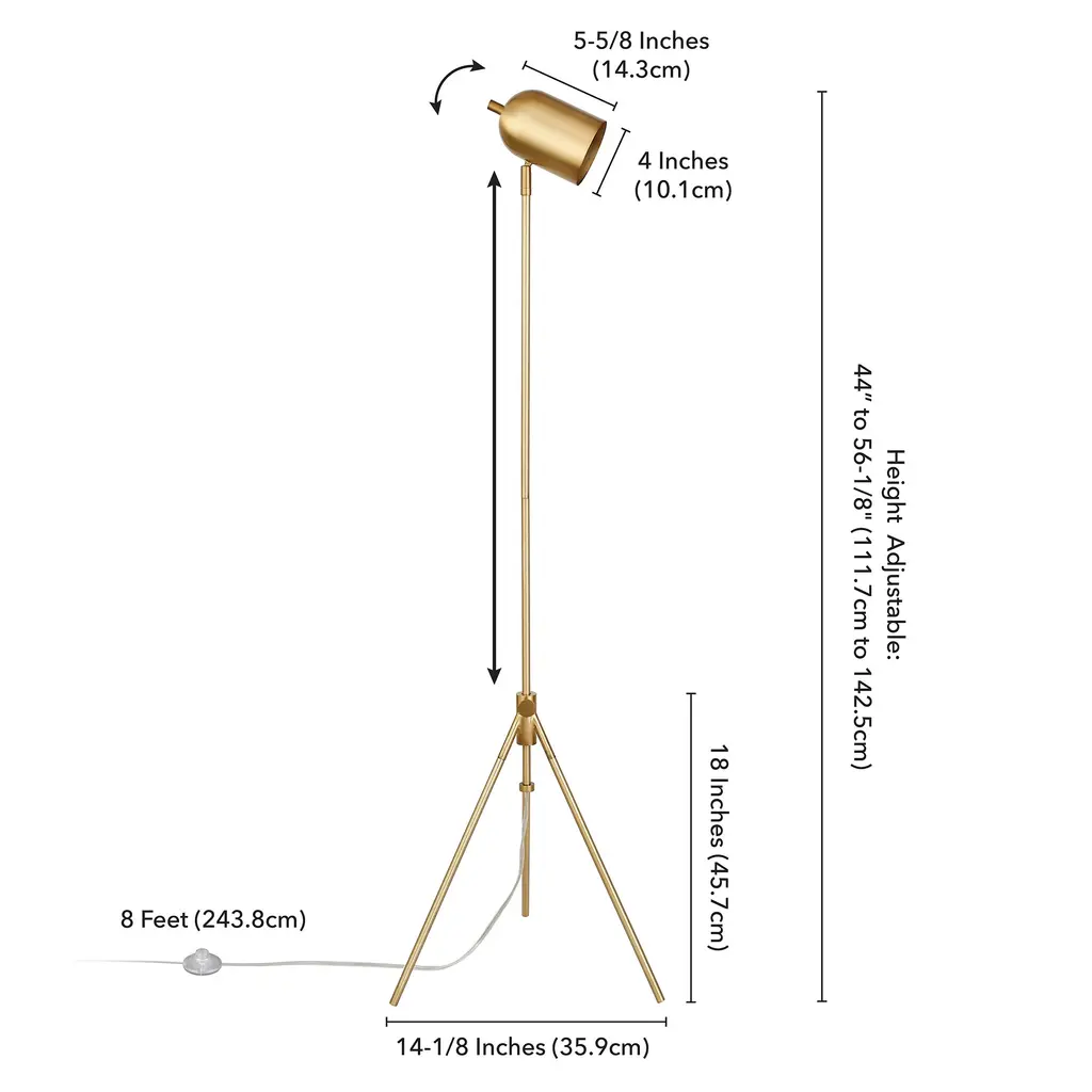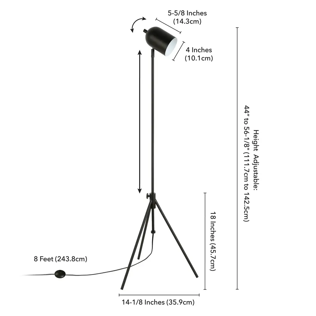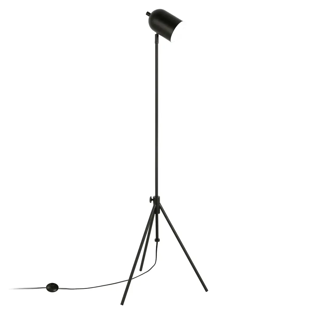 Infuse your space with a editorial feel with the addition of this modern tripod floor lamp. Inspired by studio lighting, this fixture features an adjustable center pole and is finished in your choice of neutral metallic tones. Create an easy designer look in your bedroom, living room, or workspace Handcrafted finish is applied to the steel base. Paired with an elongated dome-shaped shade. This shade is made of metal. Rated for one 100W incandescent bulb; 9W LED bulb, 23W fluorescent (CFL) bulb, or 9W self-ballasted LED bulb. E26-base bulb. Includes an 8 ft. cord. Clean with a soft, dry cloth; no harsh chemicals or abrasive cleaning materials.