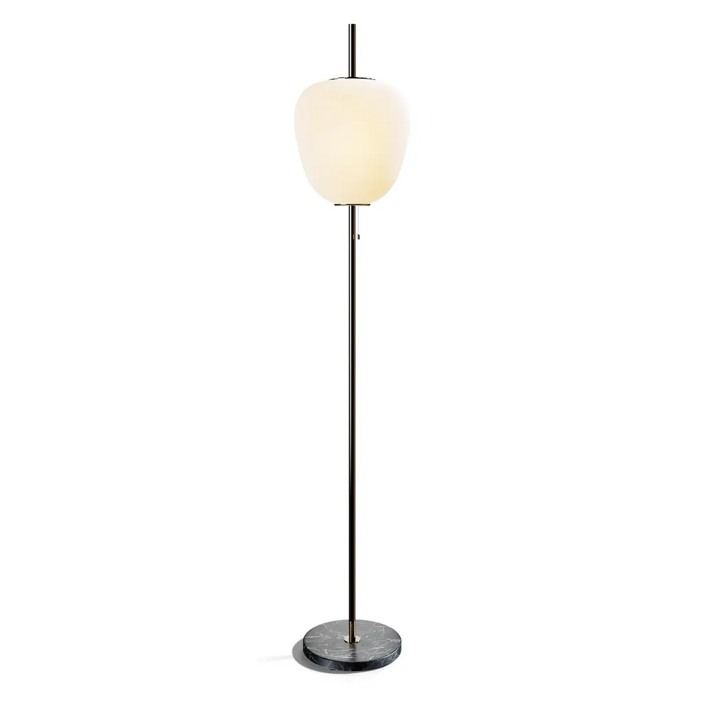 Brushed Brass Tall J14 Floor Lamp by DisderotLimited Edition. Designed by Joseph-André Motte.Dimensions: Ø 30 x H 185 cm.Materials: Brushed brass, glass and black marble.Delivered with authentication certificate. Made in France. Custom finishes are available on request. Also available with a dimmer option. Please contact us. All our lamps can be wired according to each country. If sold to the USA it will be wired for the USA for instance.An equally rare version of the J13 lamp, this large floral design creates a soft 360° atmospheric illumination. An intensity dimmer allows you to highlight its double-layer glass, while the minimalist elegance combines with a luxurious finish in weathered brass and white marble. Also available as a pair, this lamp is a modern classic, which is now available as this reissue by Disderot.Influenced by the masters of modernity (Louis Sognot, René Gabriel, and Marcel Gascoin), Joseph-André Motte built a prestigious career. He was responsible for many of the most inspirational interior design commissionsduring ‘Les Trente Glorieuses’, including major airports and the Paris metro. He is perhaps the one person who singlehandedly created many of the models for French design, with his great capacity for formal invention, and sober yet daring style, being emblematic of French creativity of the twentieth century. His rigor and exacting style earned him many titles and honors.After studying engineering, Pierre Disderot opened his first studio in 1948. His collaboration with the young avant-garde designers, Pierre Guariche, JosephAndré Motte, Alain Richard, and Michel Mortier, led him to create what is today considered to be the best lighting of the nineteen fifties. His aesthetic abilities and knowledge allowed him to design an important part of the Disderot catalog, revealing, beyond the publisher, an artist of the first-order.