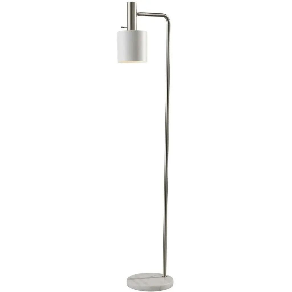 Live in luxe modernity with this floor lamp that will illuminate grandly. The brushed nickel finish capsule-like shade with a white interior balances the slender body and elegant white marble base. Whether it lends you its light when you''re reading in the living room, or doing work in your office, this lamp will complement your home.Wattage: 40Bulb Type: E26Number of Bulbs Required: 1Bulbs Included?: No