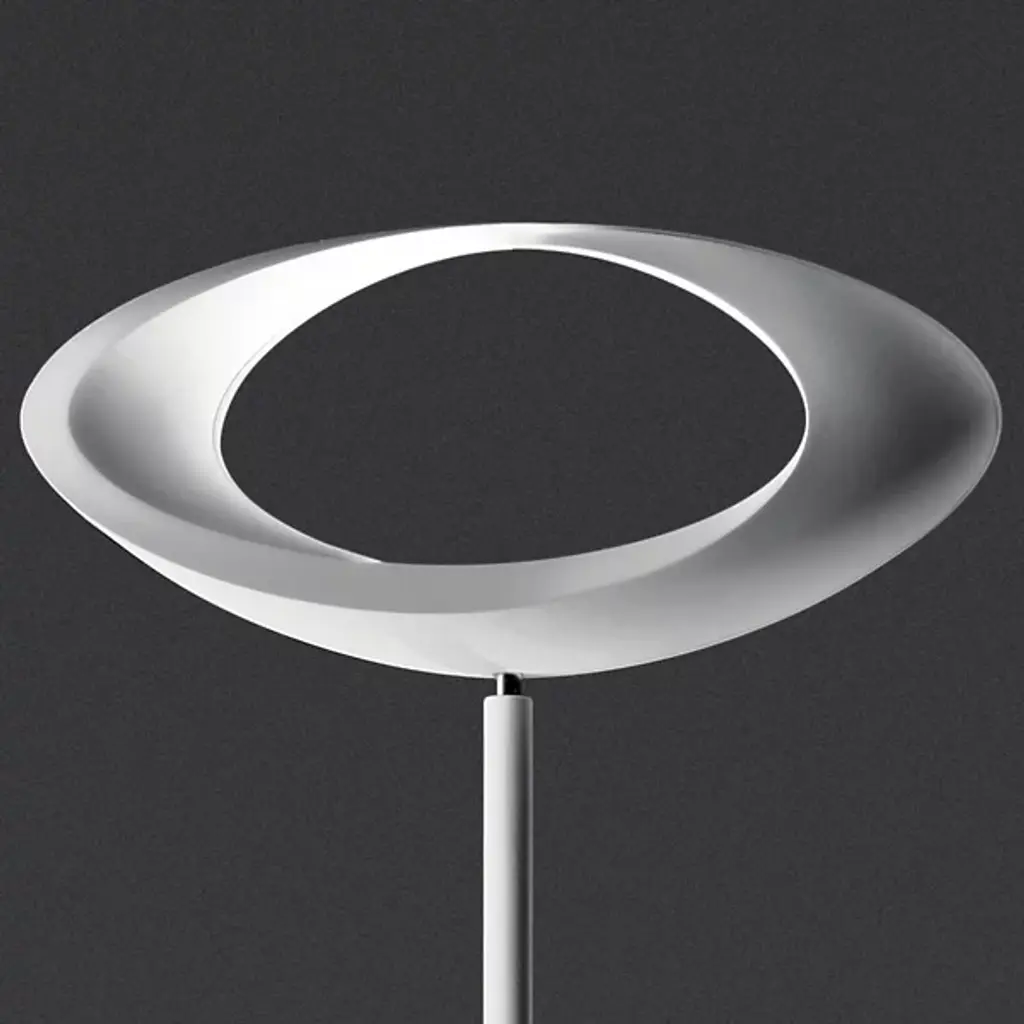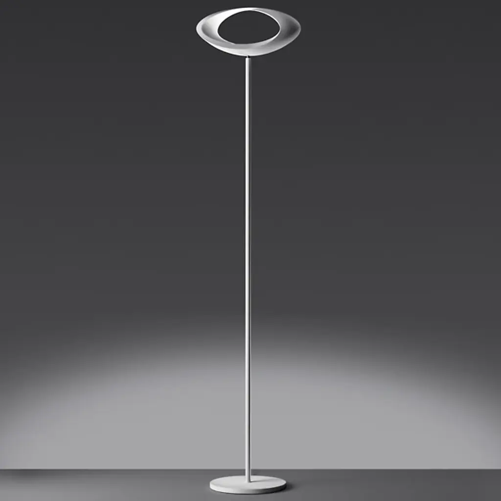 The Artemide Cabildo Floor Lamp offers indirect ambient lighting in an elegant modern design. Designed by Eric Sole, the Cabildo Floor Lamp is a lofty 72" in height; the lamp and specular reflector are hidden in the inner curve of the oval die-cast aluminum shade.
