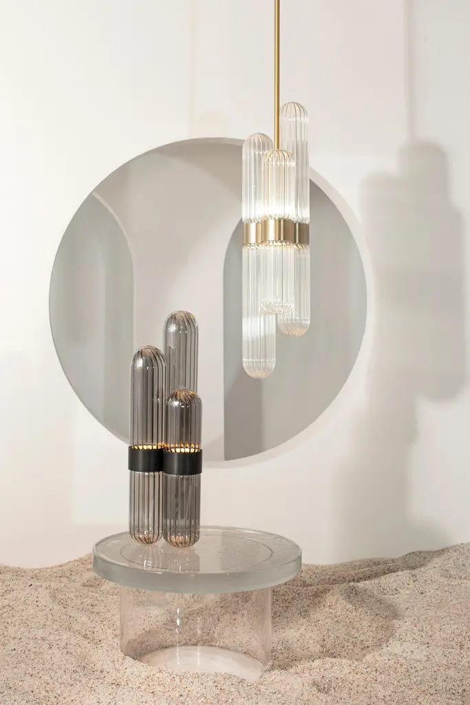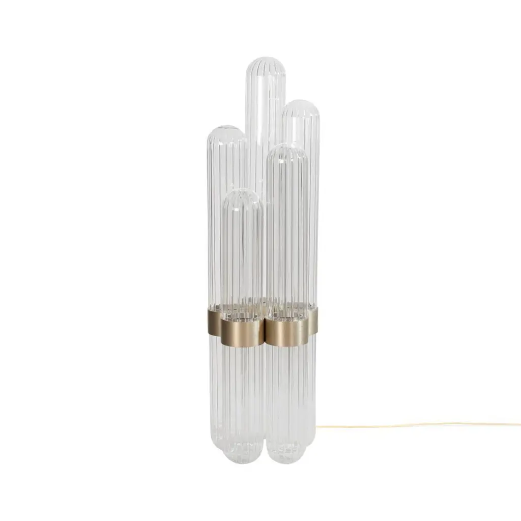 Cactus big lamp transparent by Pulpo.Dimensions: D30 cm x H100 cm.Materials: Borosilicate glass, steel, brass, aluminium.Also available in different finishes: transparent black, transparent brass, smoky grey black, smoky grey brass.The symmetry of tall grown, succulent ensembles inspired French designer Mickaël Koska to form an illuminating sculpture for living spaces. His work with cactus underlines what he calls "to give life to surprising natural creations", preferring simple lines and focus on the essential.Each piece is made of borosilicate glass and the centrpiece is from alumiunium.All our lamps can be wired according to each country. If sold to the USA it will be wired for the USA for instance.Pulpo is a design editor for high-end products in the home sector.Design is our passion. Art is our engine. We are fascinated by the craft of the ceramic and glassblowing workshops and are guided by the rough aesthetics of these unique pieces.Pulpo’s philosophy goes back to the idea of ??the “carte blanche”. Our designers and artists develop their designs freely and experimentally. A variety of materials and a weakness for structures are our strengths.The headquarters of pulpo is in Weil am Rhein, near the Swiss border. Consisting of the creative and sales department, warehouse and logistics, this is the think tank for our artists and designers. pulpo’s dealer network extends far beyond Weil am Rhein – from Iceland and Dubai to Australia.Pulpo is movement – is possibility – is passion.In 2006, pulpo was founded by Ursula and Patrick L’hoste as a design brand at the interface between shape and material. pulpo’s conception is to edit lighting, furniture and accessoires on editor’s choice. The company’s focus is to conduct up-and-coming designers and selected manufacturers, using the nature of material’s to form the score. Materials such as ceramics, stone and especially glass, which is pulpo’s primary focus since 2013.