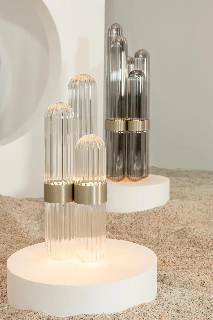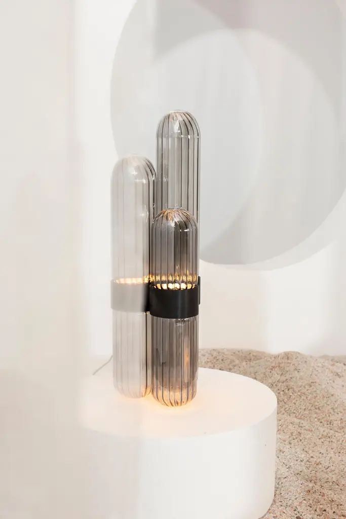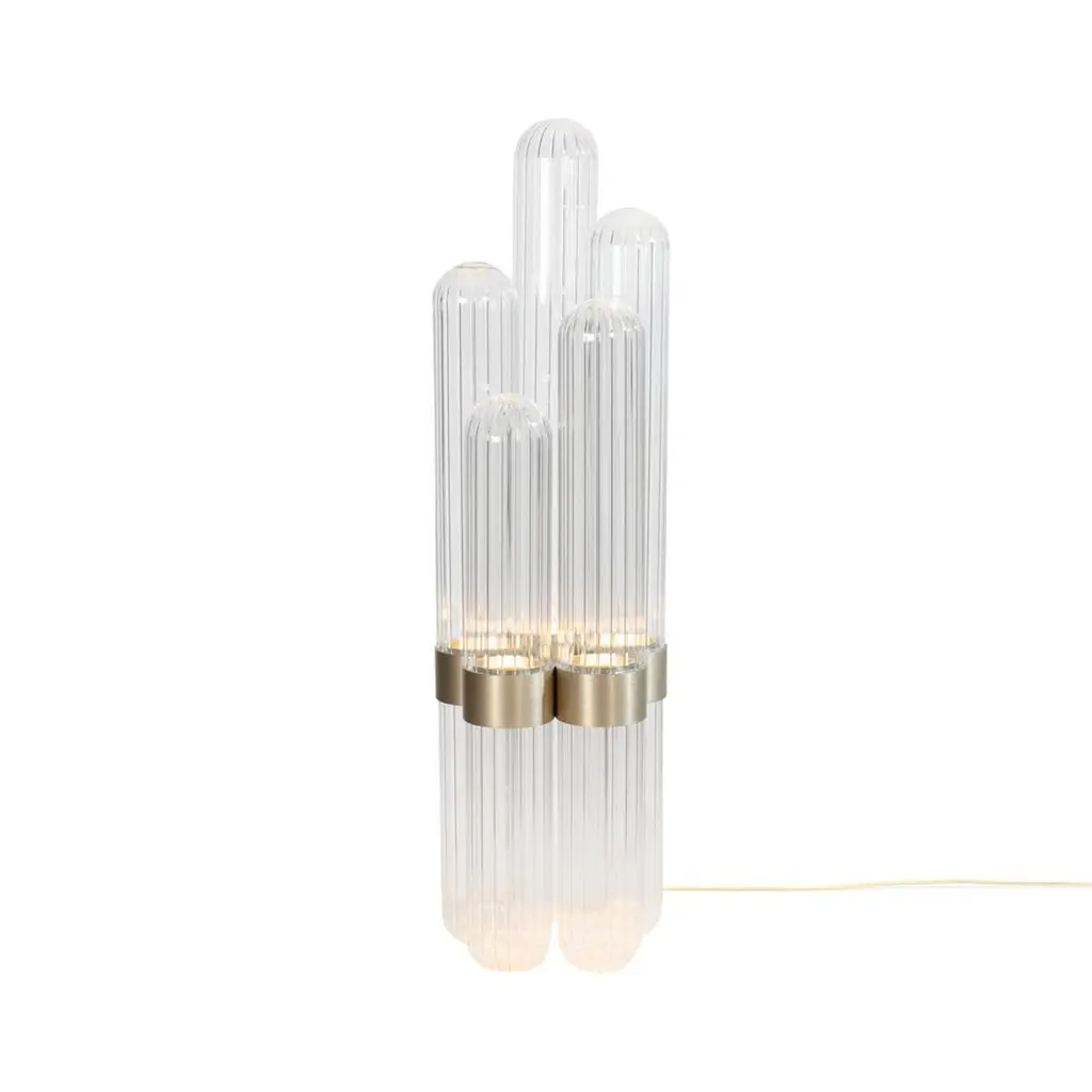 Cactus big lamp transparent by Pulpo.Dimensions: D30 cm x H100 cm.Materials: Borosilicate glass, steel, brass, aluminium.Also available in different finishes: transparent black, transparent brass, smoky grey black, smoky grey brass.The symmetry of tall grown, succulent ensembles inspired French designer Mickaël Koska to form an illuminating sculpture for living spaces. His work with cactus underlines what he calls "to give life to surprising natural creations", preferring simple lines and focus on the essential.Each piece is made of borosilicate glass and the centrpiece is from alumiunium.All our lamps can be wired according to each country. If sold to the USA it will be wired for the USA for instance.Pulpo is a design editor for high-end products in the home sector.Design is our passion. Art is our engine. We are fascinated by the craft of the ceramic and glassblowing workshops and are guided by the rough aesthetics of these unique pieces.Pulpo’s philosophy goes back to the idea of ??the “carte blanche”. Our designers and artists develop their designs freely and experimentally. A variety of materials and a weakness for structures are our strengths.The headquarters of pulpo is in Weil am Rhein, near the Swiss border. Consisting of the creative and sales department, warehouse and logistics, this is the think tank for our artists and designers. pulpo’s dealer network extends far beyond Weil am Rhein – from Iceland and Dubai to Australia.Pulpo is movement – is possibility – is passion.In 2006, pulpo was founded by Ursula and Patrick L’hoste as a design brand at the interface between shape and material. pulpo’s conception is to edit lighting, furniture and accessoires on editor’s choice. The company’s focus is to conduct up-and-coming designers and selected manufacturers, using the nature of material’s to form the score. Materials such as ceramics, stone and especially glass, which is pulpo’s primary focus since 2013.