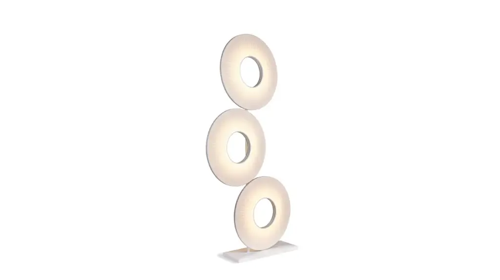 Fabrice Berrux has designed a collection of sculptural lighting fixtures for Roche Bobois, inspired by the movement of the sun. The Cactus floor lamp is composed of luminous rings hand-wrapped in a dispersing fabric. Once lit, the eye is captivated by this elegant, contemporary fixture.