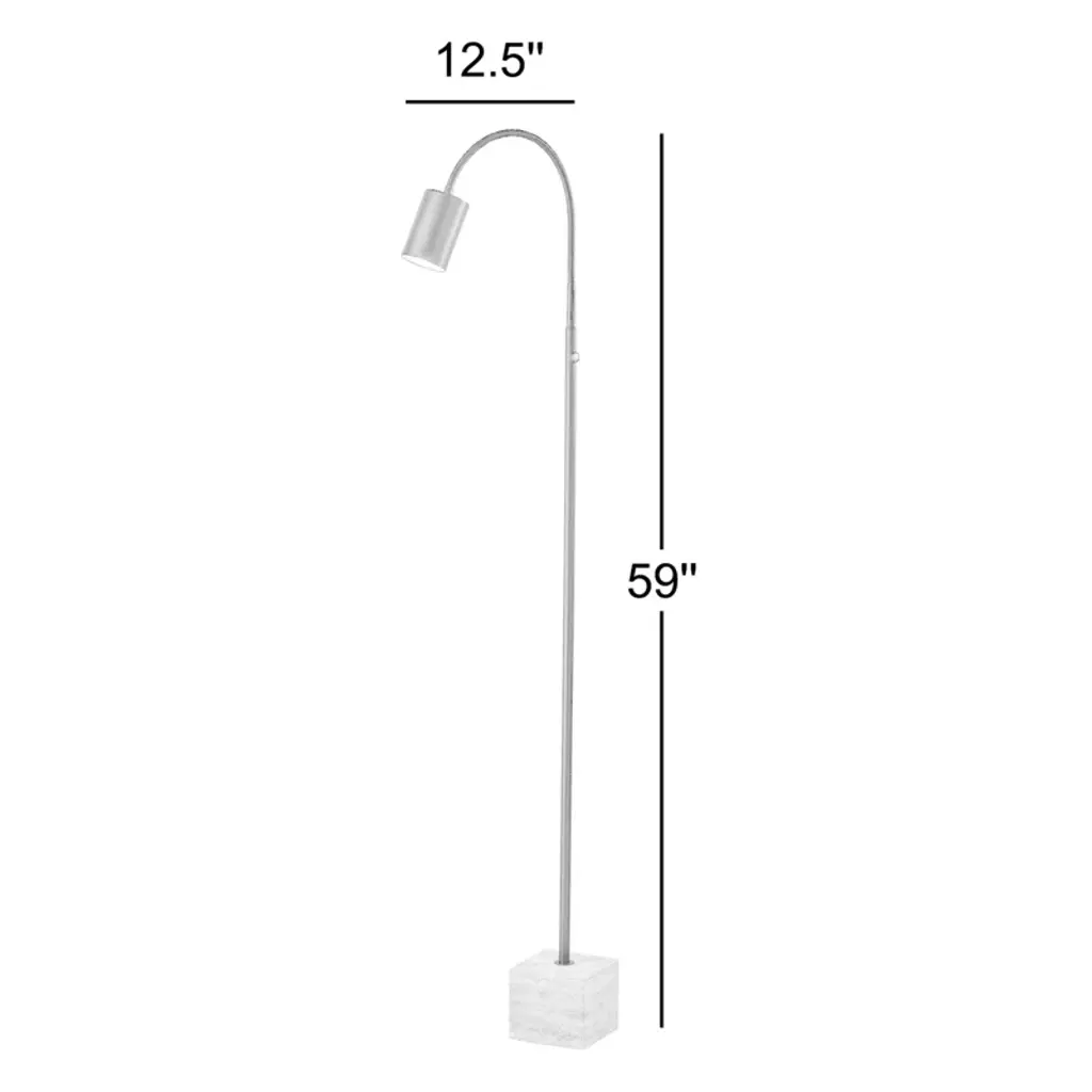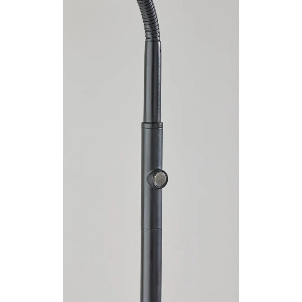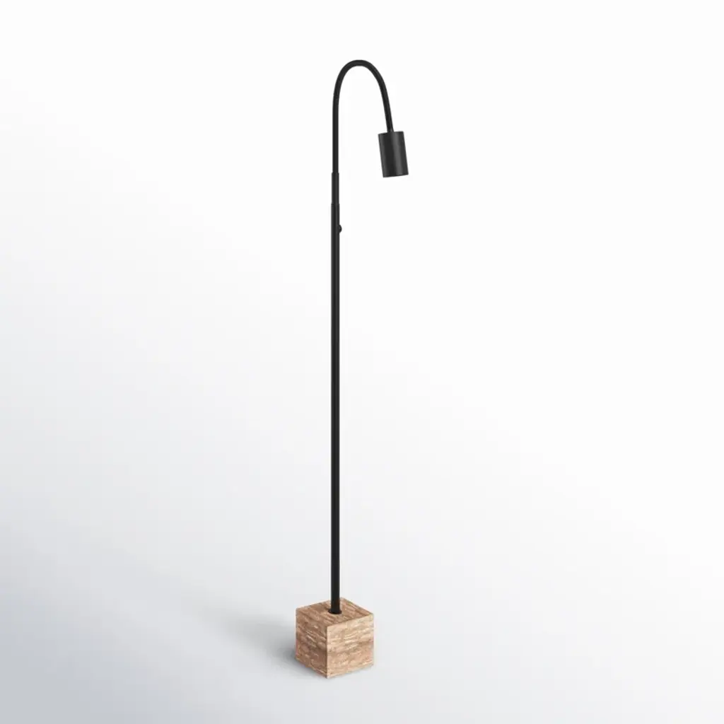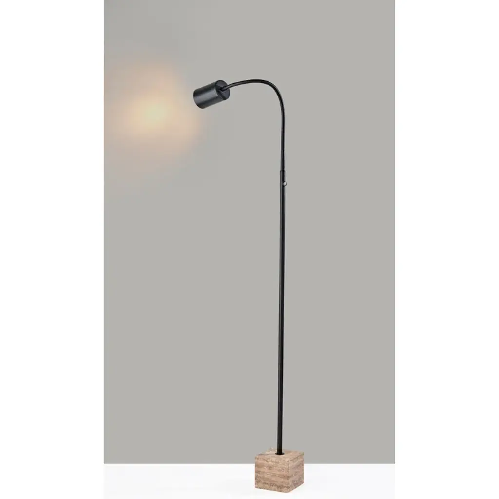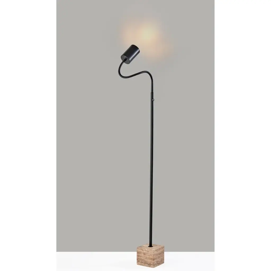 Brighten up your space. This sleek floor lamp is skillfully crafted from sturdy travertine stone and sleek black-finished metal. A matching shade supports a single bulb, while the flexible gooseneck design lets you aim light in just about any direction. With its small footprint, this lamp is a great accent and source of task lighting in living rooms, home offices, and reading nooks.
