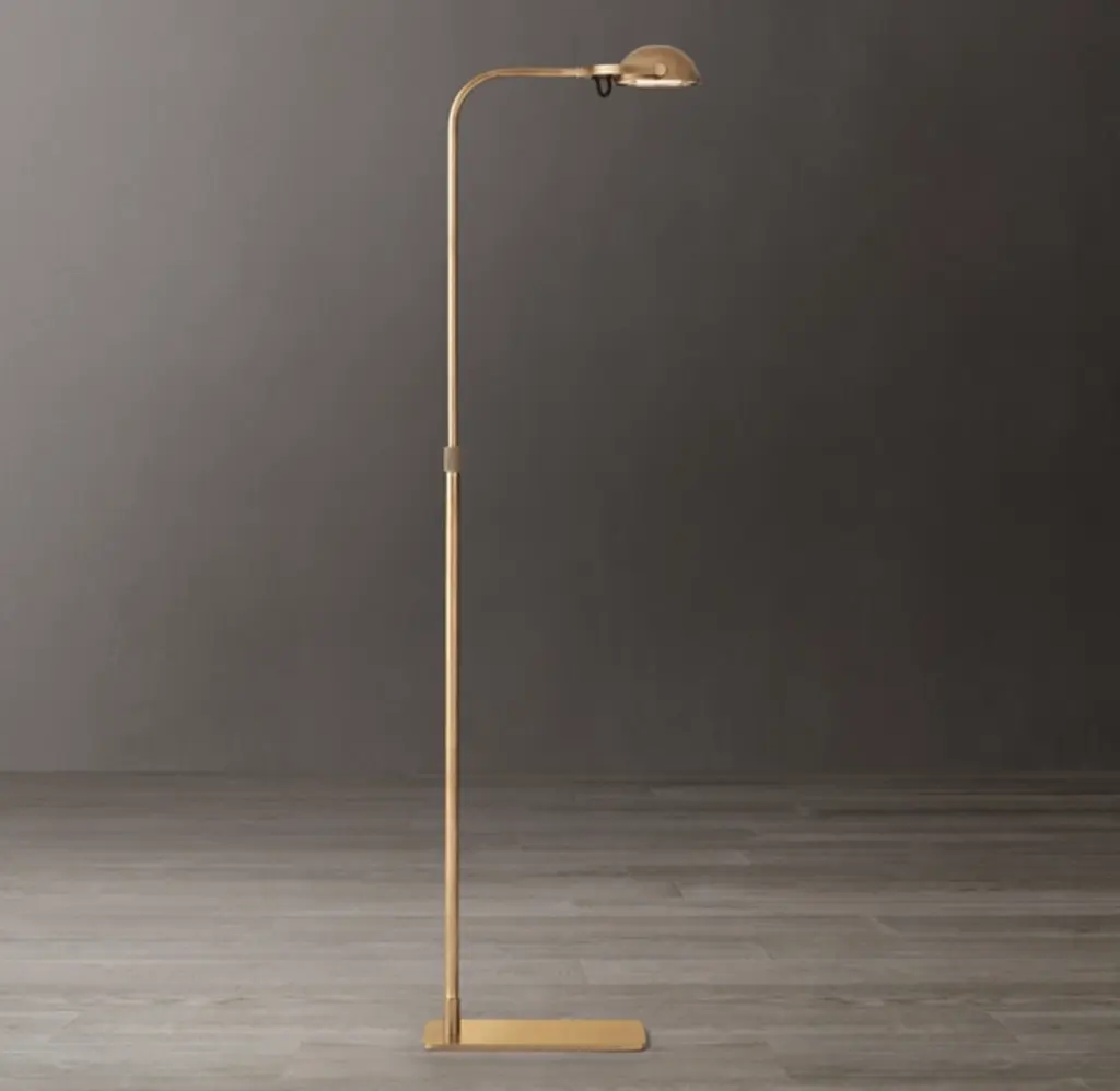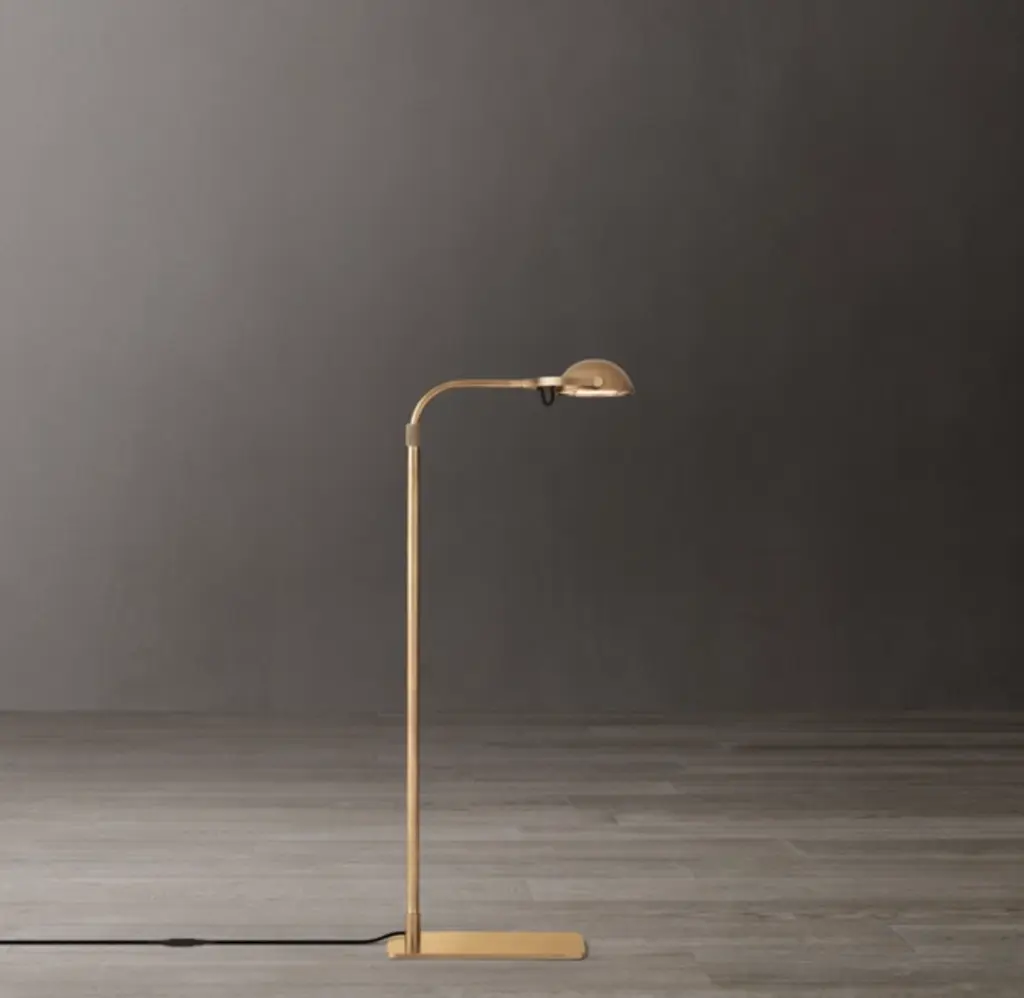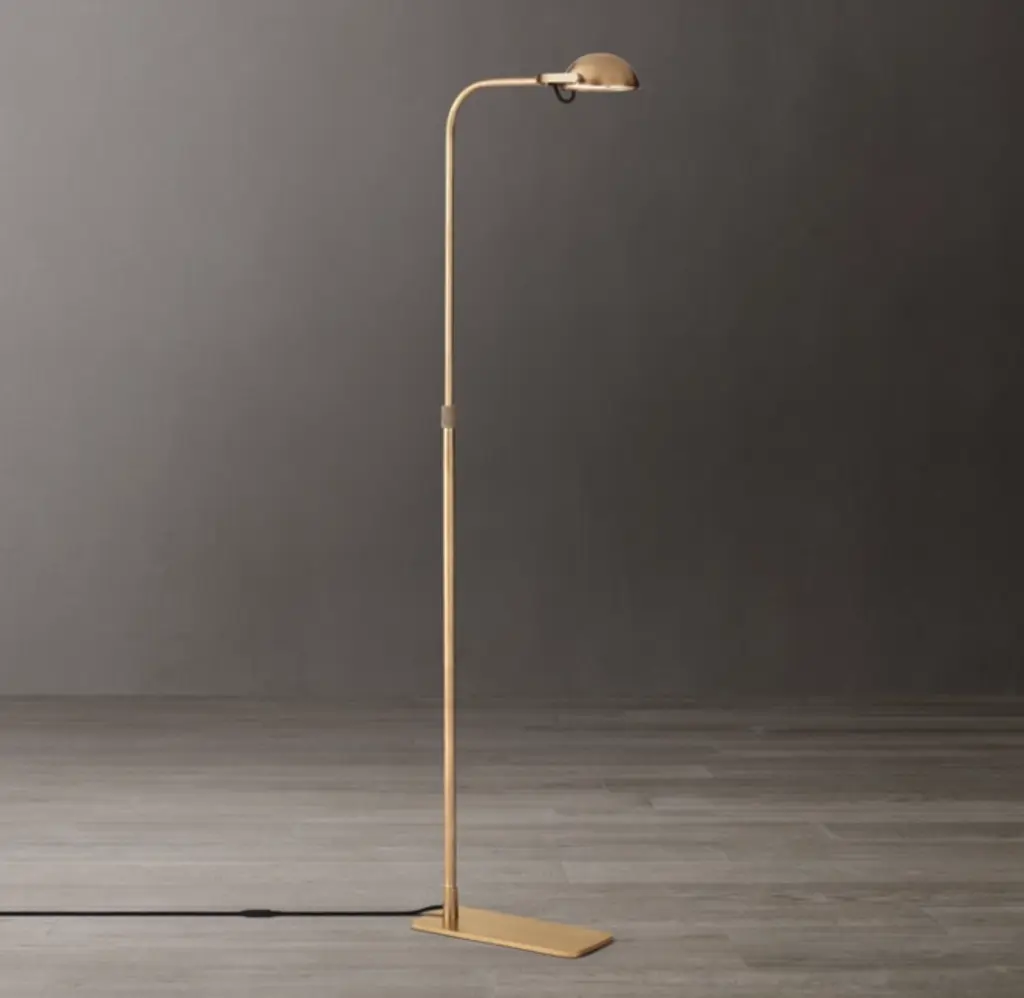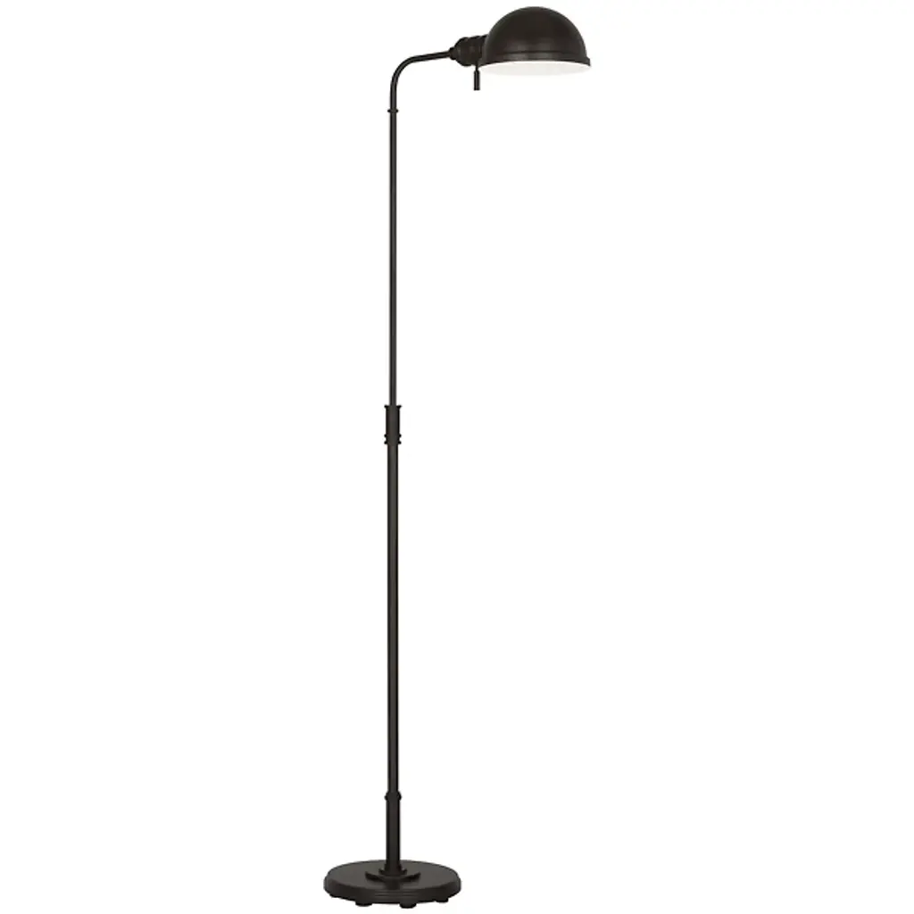 The Callan lamp from designer Ian Fowler is handcrafted of steel in a minimalist silhouette. Rising from a weighted base, the slender, telescoping stem supports a rounded cantilevered shade that casts a focused swath of light.