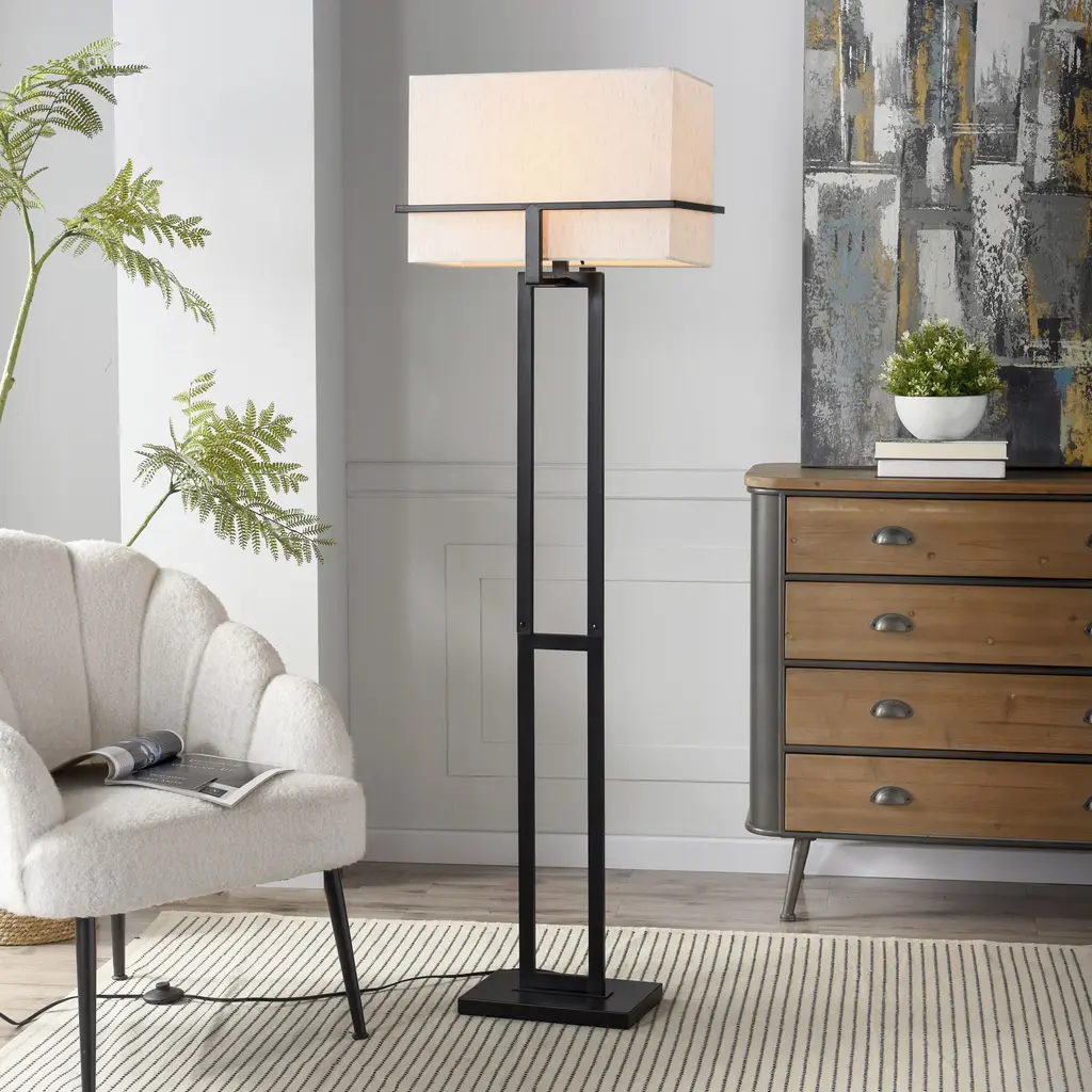 Elevate your space with this sleek and modern steel floor lamp. The fabric shade softens the light, creating a warm and inviting atmosphere in any room. Choose it for your living room, bedroom, office, or entryway to bring a touch of contemporary style to your home.