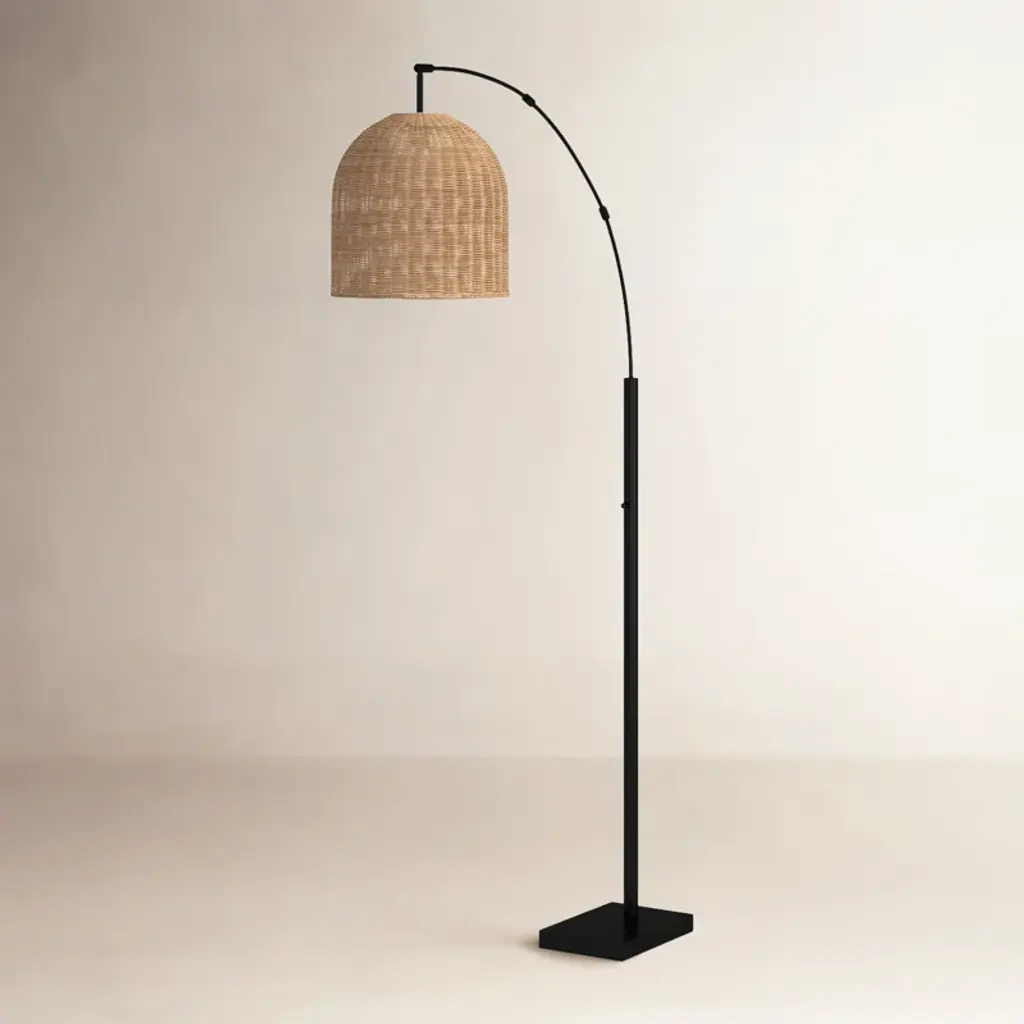 Camilla Coastal Seagrass Shade Black Iron Arched Floor Lamp