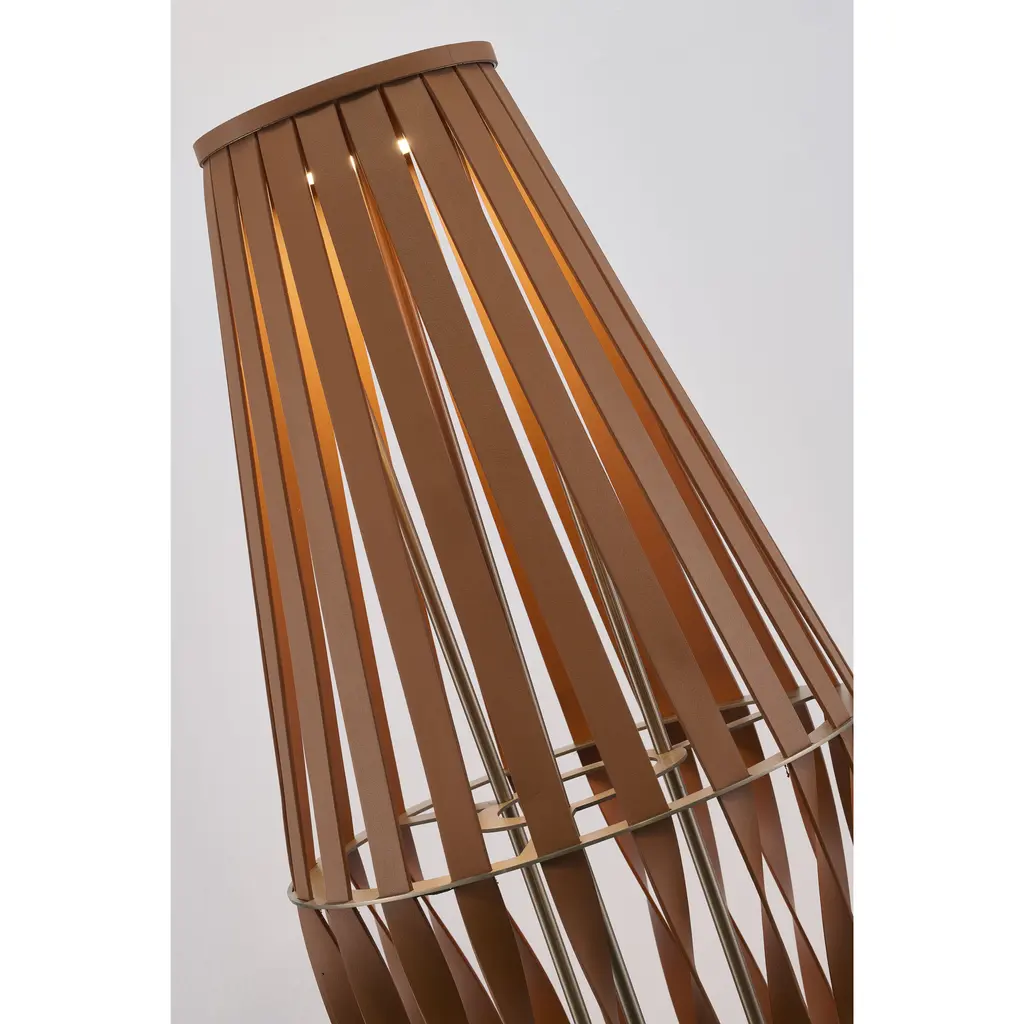 This sleek and transitional black iron LED floor lamp features a unique combination of materials, with an iron frame and leather accents that add a touch of sophistication and elegance. Crafted from iron and leather, this lamp is both durable and visually striking. The LED bulbs are included, providing bright and energy-efficient lighting with a 4000K color temperature, which is similar to natural daylight. Whether you're looking to add a touch of glamour to a bedroom or living room, this floor lamp is sure to impress.