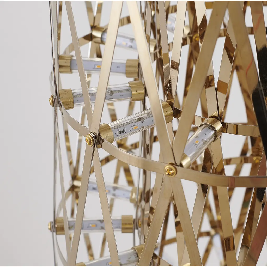 If you are looking for a light source for your bedroom, living room, reading room, or office, this exquisite LED transitional floor lamp can easily fit into your modern home décor. The frame of this floor lamp is made out of stainless steel in a gold finish, and the sturdy metal frame and all metal design incorporates a round metal base gives a sense of security. The LED bulbs are integrated into the frame, and 130 LED bulbs can provide enough illumination.