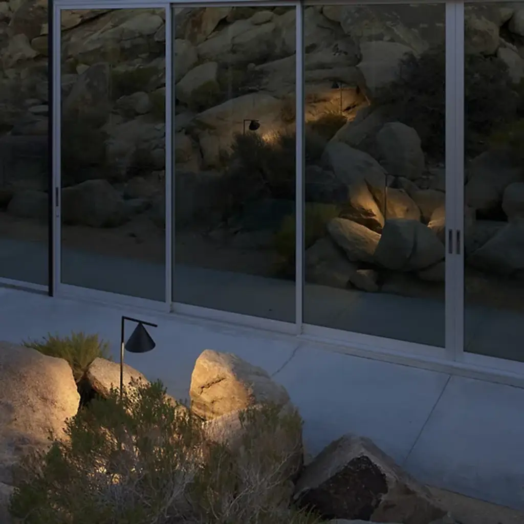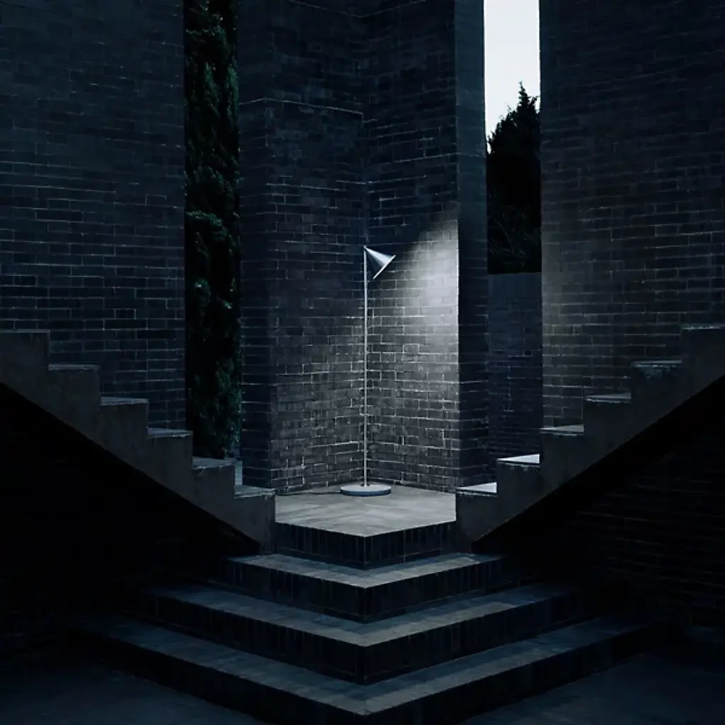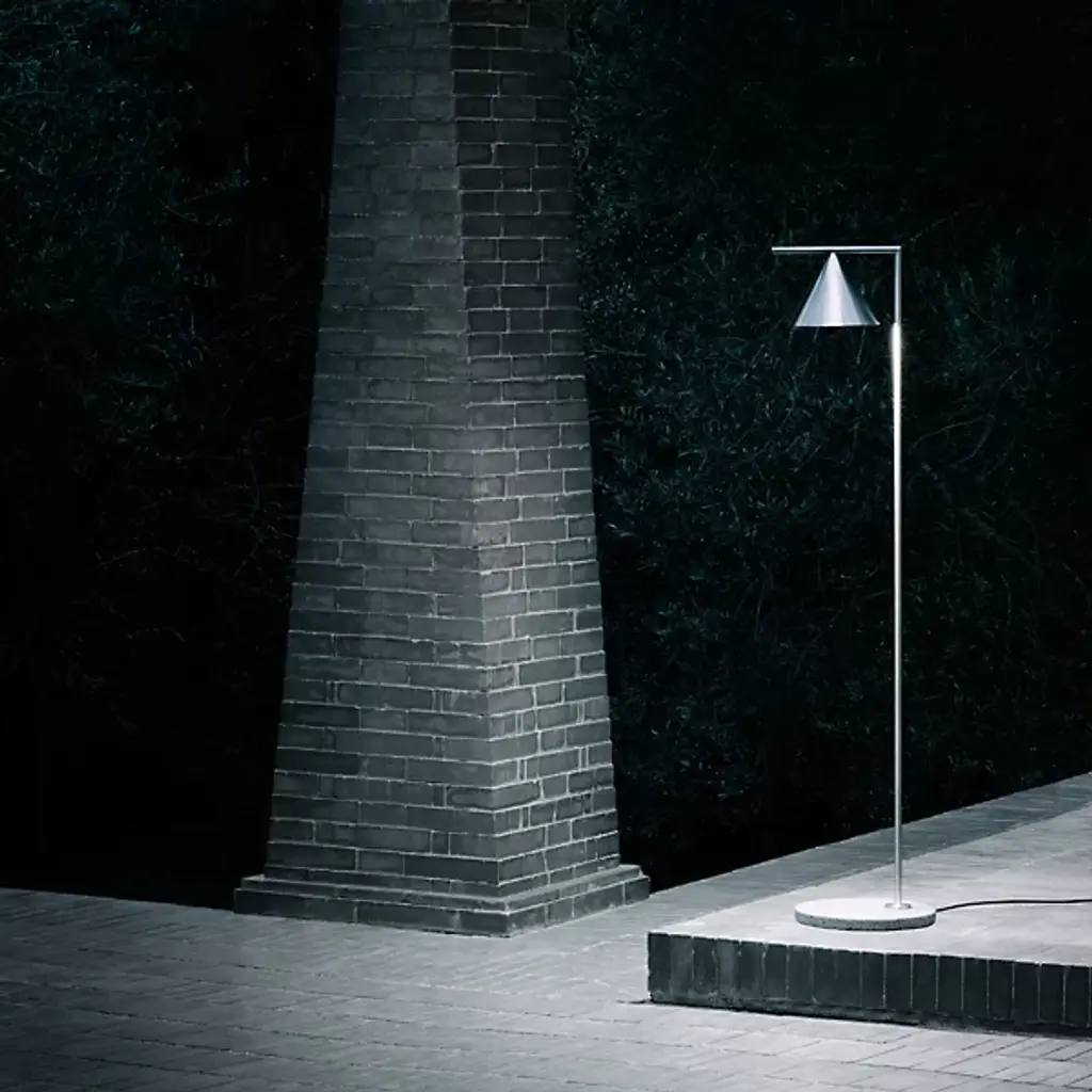A focused design showcasing the eye-catching aspects of meticulously arranged geometry. Designer Michael Anastassiades brings his trademark minimalist style to the Captain Flint Outdoor LED Floor Lamp from FLOS. The sharpness of its silhouette stands out as a punch of contrast to the textures of the outdoors. It weathers mother nature with a stable Italian stone base and a fine metal construction. The corner created by the slender column adds a subtle accent that complements the architectural contours created by your home. Its cone shade swivels up and down with a sense of balance. Sifted through a diffuser plate, the piece provides a radiant glow prized for its versatility.