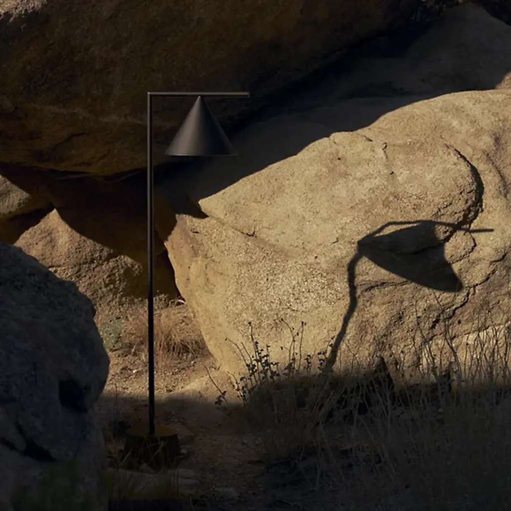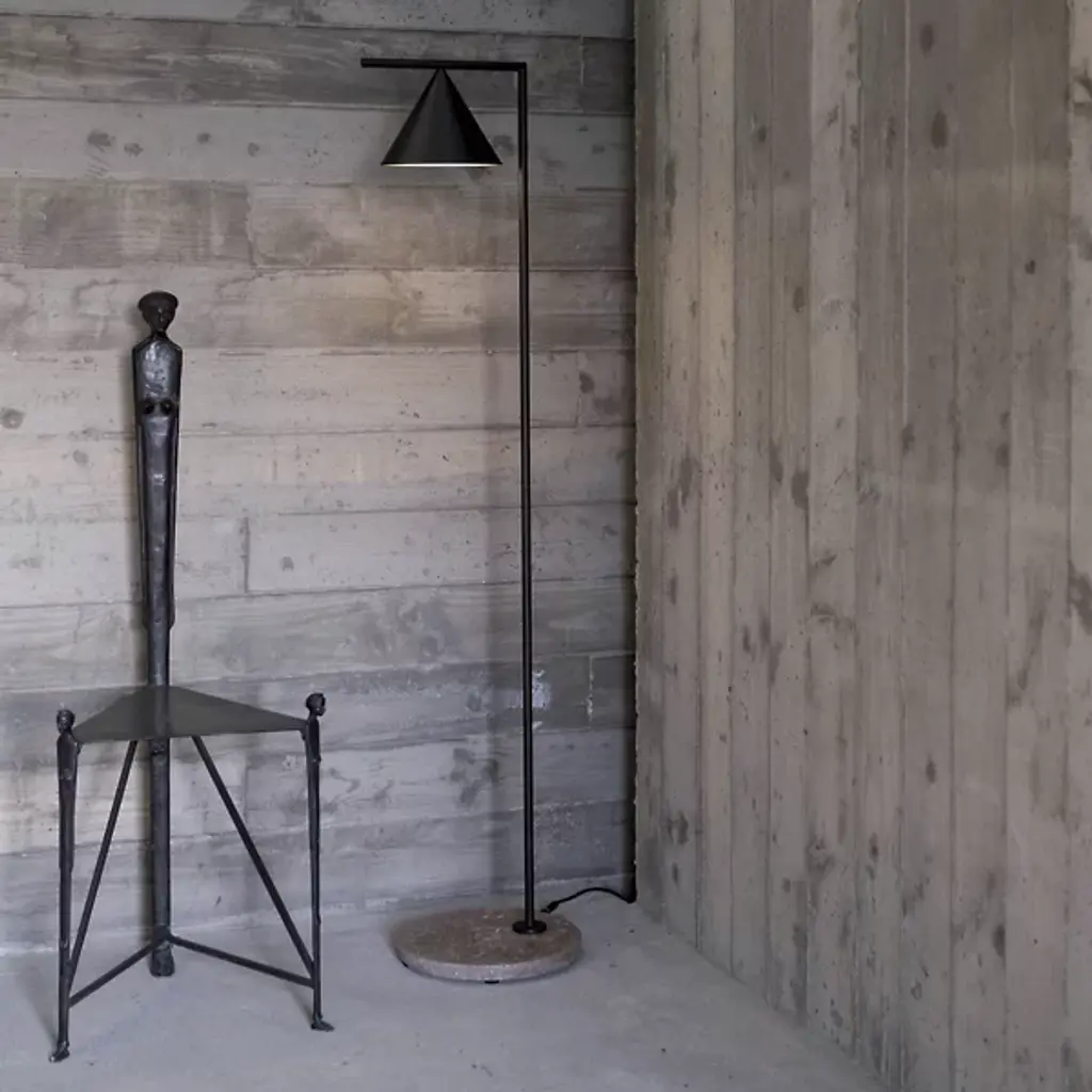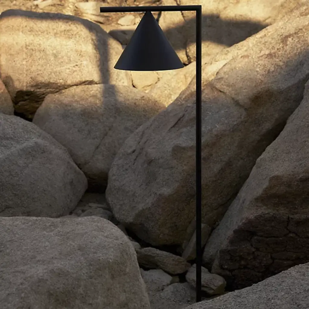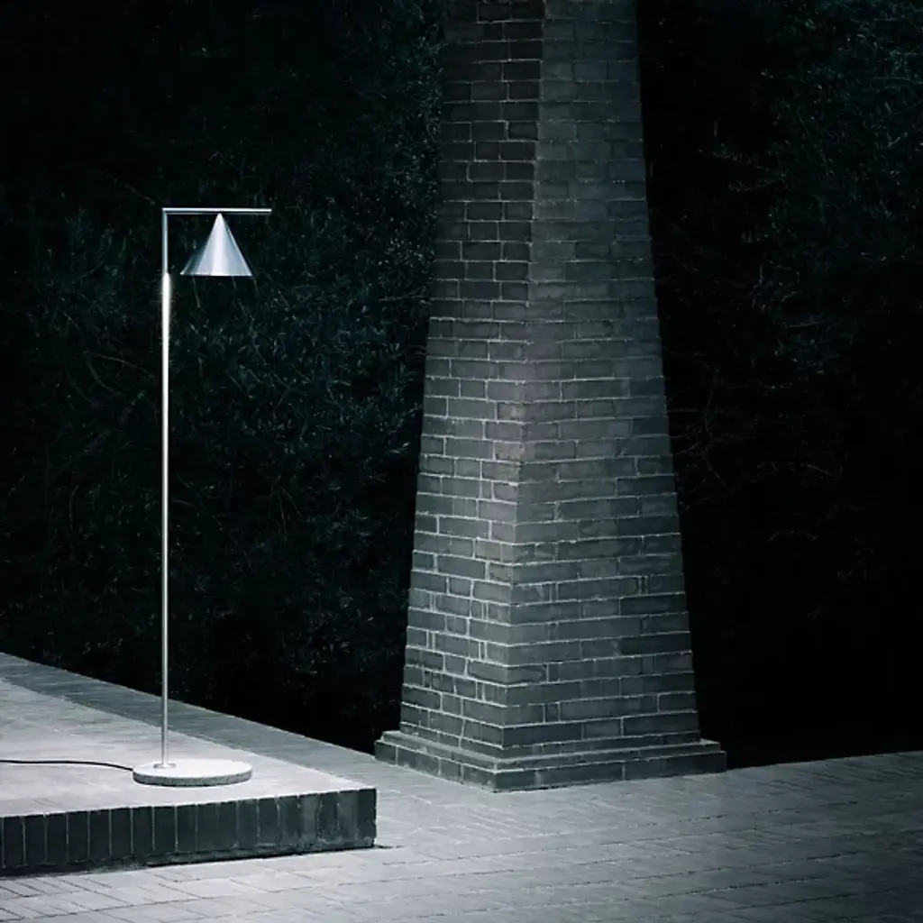 A focused design showcasing the eye-catching aspects of meticulously arranged geometry. Designer Michael Anastassiades brings his trademark minimalist style to the Captain Flint Outdoor LED Floor Lamp from FLOS. The sharpness of its silhouette stands out as a punch of contrast to the textures of the outdoors. It weathers mother nature with a stable Italian stone base and a fine metal construction. The corner created by the slender column adds a subtle accent that complements the architectural contours created by your home. Its cone shade swivels up and down with a sense of balance. Sifted through a diffuser plate, the piece provides a radiant glow prized for its versatility.
