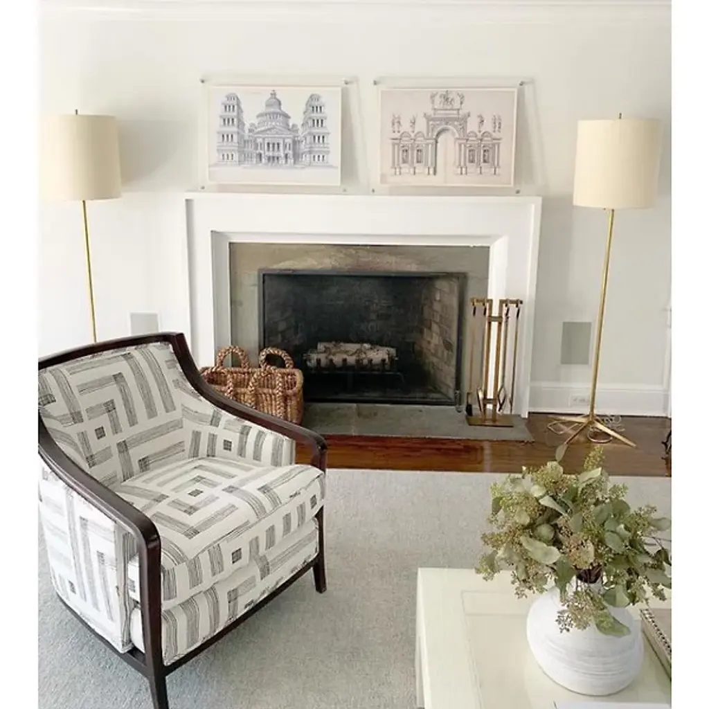 The Caron Floor Lamp by Visual Comfort Signature, formerly known as Visual Comfort, instills functionality into this piece by adding a touch of unique style. Featuring a closed-top shade compels this fixture to smoothly and evenly distribute ambient light to the entire room, while providing a bit of extra light downward toward any subject below. Two independent pull-chain switches control each of their respective bulbs. An 18-inch ‘X’-shaped base provides stability. Designed by Thomas O’Brien.