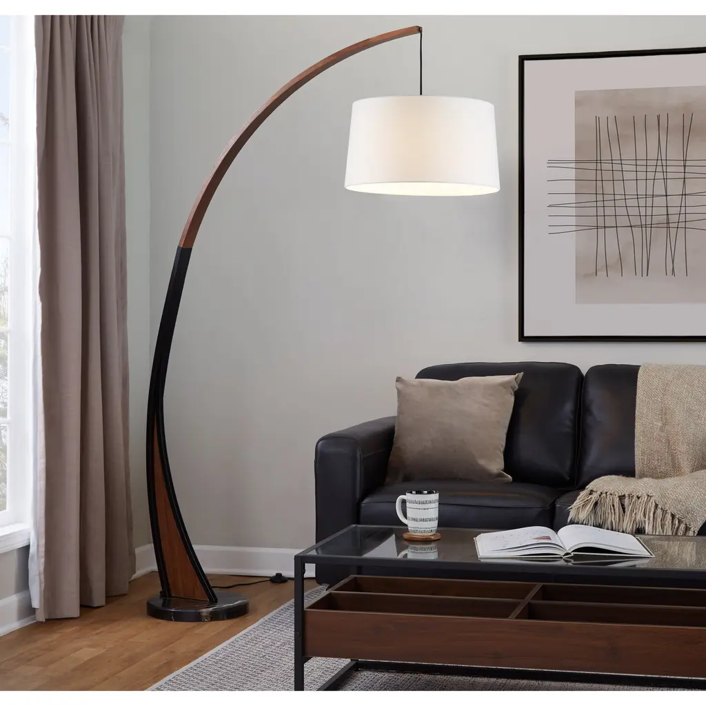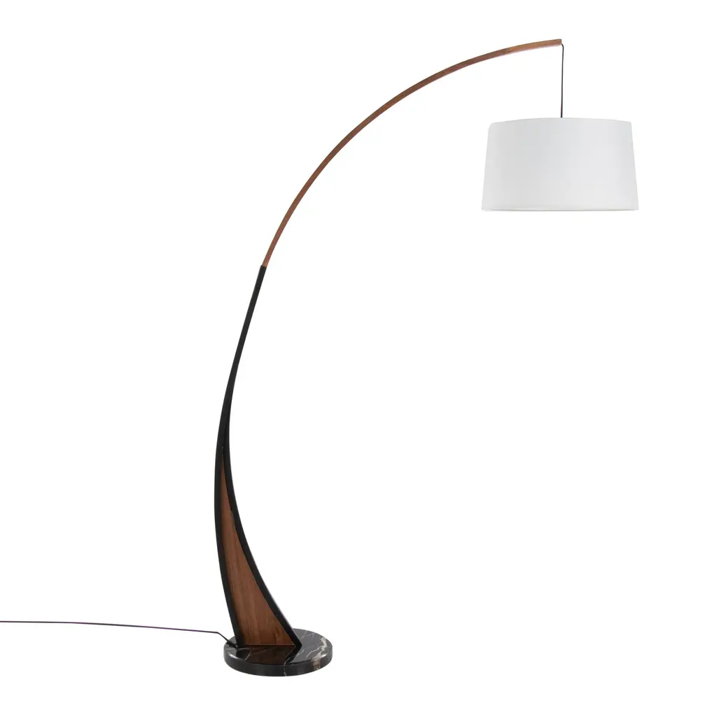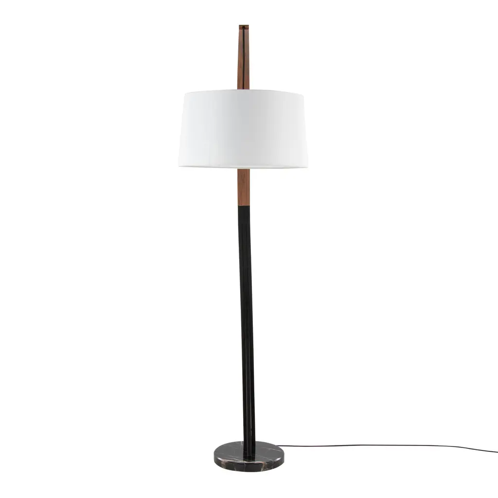 Carson Carrington Farrah-Isa Floor Lamp - Walnut Wood/black Marble & Metal/white Linen