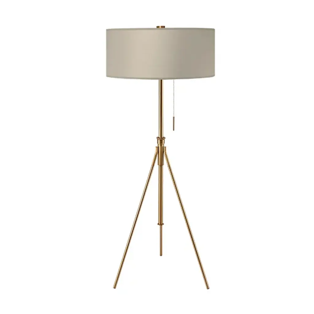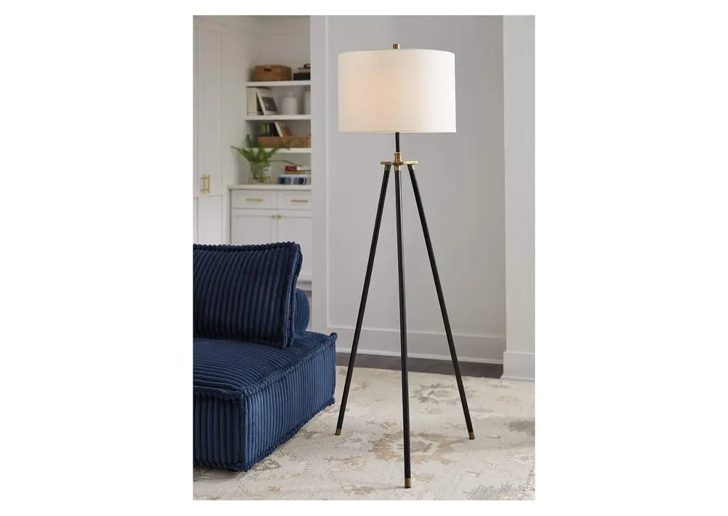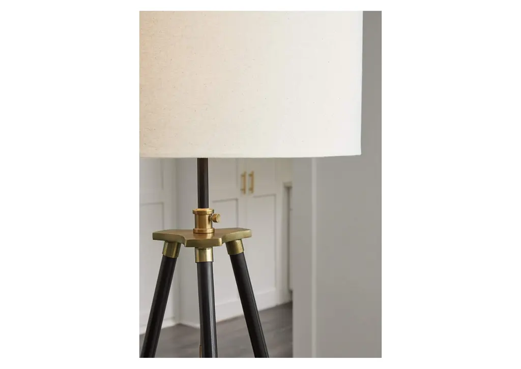 The Cashner floor lamp strikes a pose for casually cool style. A snappy tripod base and handsome finish make it all the more interesting. The adjustable height design makes it all the more functional. Tuck this lamp behind a chair or sofa as a reading lamp, or to cast ambient light for brighter moments on a darker night. Weight 16.000 lbs. (7.2kgs.)