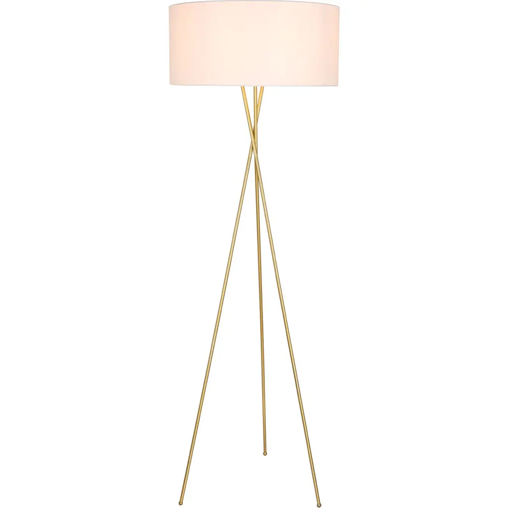The Cason Floor Lamp from Elegant Lighting stands as a testament to the beauty of simplicity in design. This lamp features a trio of slender rods that converge to support a generously proportioned drum shade, forming an aesthetic coherence of angles and curves. The shade acts as a diffuser, casting a mild radiance that's perfect for creating a cozy reading nook or adding warmth to a living room corner. Its presence is both commanding and unobtrusive, making it a versatile piece for various decor styles.