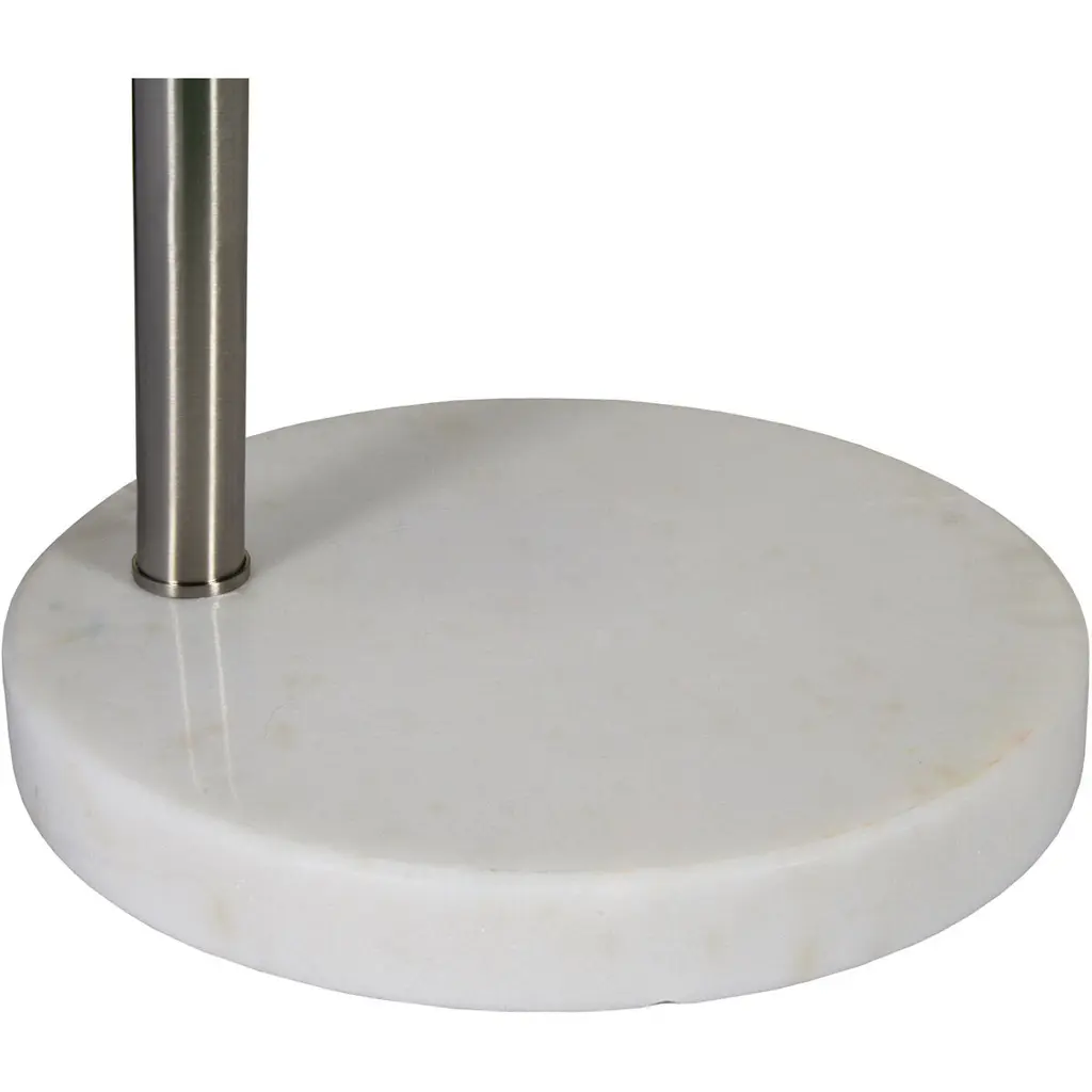 The retro arc of this decorative floor lamp looks effortlessly glamorous from the ground up. The elegant arch of the metal stem is grounded by a round iron base, which keeps the curve of the lamp and off-white cotton drum lampshade in perfect poise. The mid-century style silhouette and brushed satin nickel finish makes it easy to mix and match this decorative light fixture with other modern furnishings