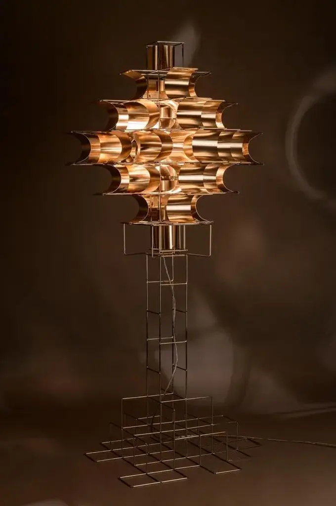 Cassiopée floor lamp by Sauze Dimensions: 142 x 73 x 73 cm We also have it in different dimensions (48, 60, 100 cm) and various colors (silver cop, gold, salmon). Max Sauze: French This piece is attributed to the mentioned designer/maker. It has no attribution mark and no official proof of authenticity, however it is well documented in design history. I take full responsibility for any authenticity issues arising from misattribution, Up to 250V (Europe/UK Standard).