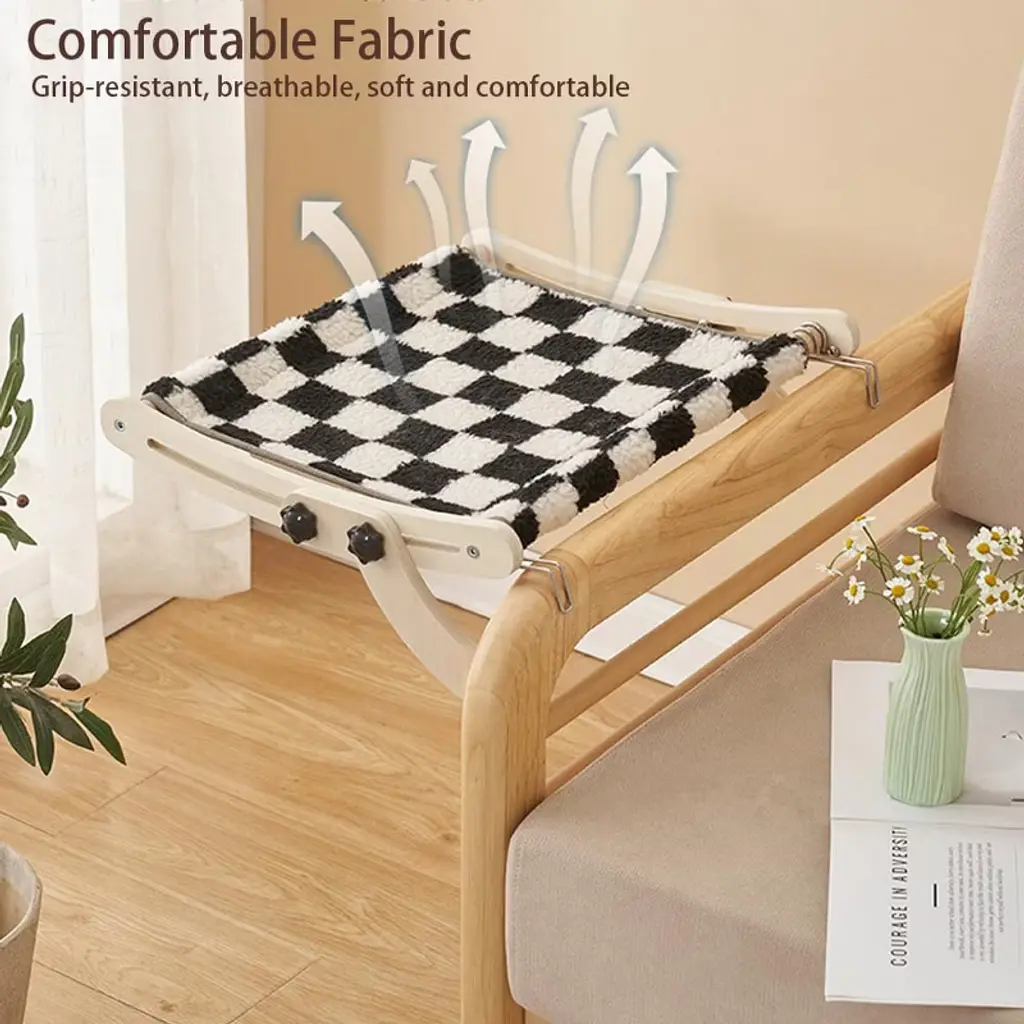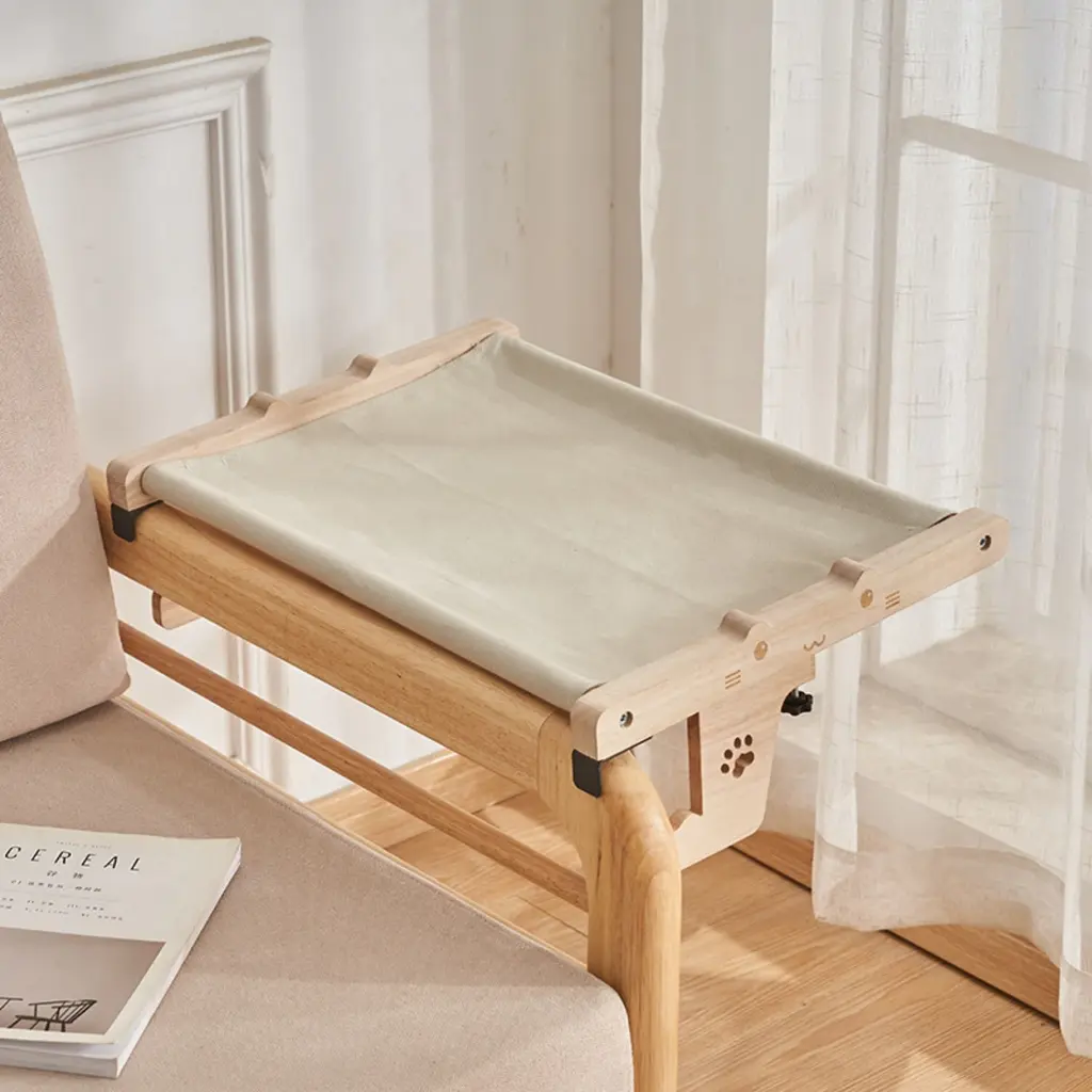 1.Customizable Support SystemFeatures adjustable snap-in legs (telescopic) that adapt to 15"-28" sill widths, reinforced steel hooks, and non-slip grips. Securely holds cats up to 18kg (40 lbs)¡ªideal for large breeds like Maine Coons. The frame locks flush against surfaces without wobbling, ensuring stability on windows, radiators, or furniture edges. 142.Dual-Purpose Lounging DesignFunctions as both a sun-warmed radiator bed (retains heat efficiently) and a bird-watching window perch. Low-profile frame installs bedside, on verandahs, or desks to keep cats near human companions while saving floor space. The canvas surface encourages nesting for naps or play. 183.Furniture-Safe, Space-Saving SecurityUses clamp-on grips (not suction cups) that attach securely to sills, headboards, or cabinets without leaving marks. Compact frame extends only 12" from surfaces, ideal for apartments. Tested to prevent tipping even during energetic jumps. 144.Scratch & Fur-Resistant Easy CleaningRemovable cover made of tight-weave canvas sheds fur effortlessly and resists claw damage. Machine-washable (cold cycle) and quick-drying fabric maintains hygiene between uses. Wipe-down metal frame prevents rust or odor buildup. 155.Multi-Location FlexibilityInstalls in 5+ spots: sunny windows (UV-resistant fabric), radiators, bookshelves, dressers, or verandahs. Contains shed fur in designated zones and adapts to cats¡¯ preference shifts. Includes rubber-tipped legs for floor use as a freestanding bed. 18