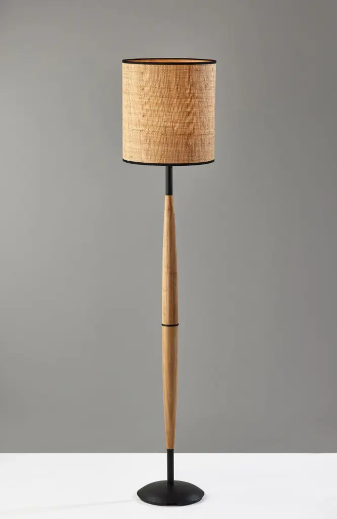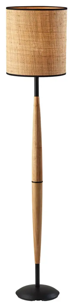 The perfect addition to coastal, transitional, or farmhouse décor, the 63" tall Cayman floor lamp imbues any space with a stylish blend of materials. A round black metal base supports a sleek stem crafted of natural wood that highlights the attractive wood grain, while black metal accent pieces along the stem create a balanced visual appeal. Topping the lamp is a 14" tall drum shade. The lamp''s woven natural rattan shade softly disperses the light from a 150W bulb and is trimmed with black fabric along the top and bottom to complement the black metal accents. A 3-way rotary socket switch provides a variety of lighting options, allowing you to easily adjust the brightness between low, medium, and high. Complete your décor with the coordinating 22.5" tall Cayman table lamp.At 63" tall and 13" deep, this lamp is the ideal addition to living spaces, bedrooms, and dining rooms.The blend of natural and metal materials complements coastal, transitional, or farmhouse styling.The black fabric trim along the lamp shade creates a polished look.Use a 3-way bulb to take advantage of the 3-way rotary socket switch with 3 brightness settings.The Cayman style is also available as a table lamp.Type A 3-way 150W Bulb (not included)