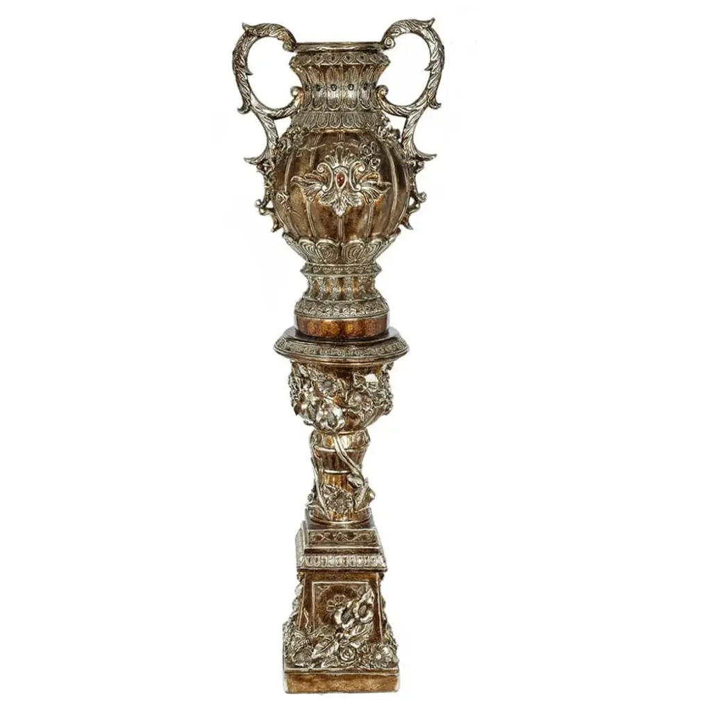 If you choose this floor vase, it is sure to be a hit in your retail location. Beautifully sculptured flower top pedestal displays make a bold statement and showcases products in their best light. Floor Vase is a timeless way to increase the noble and elegant style in your living room. Great Look of this piece of art is the essence of design, and the main selling point of this gorgeous Vase. Features: Antique looking, classic and elegant Finish: Mahogany Cracke & Ant Sil High quality Suitable for home & office decoration Dimensions: Floor Vase: 30*26*60 - 48lbs
