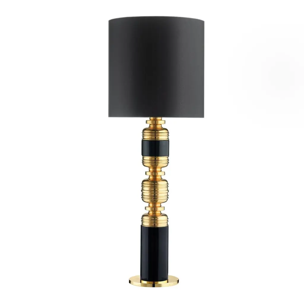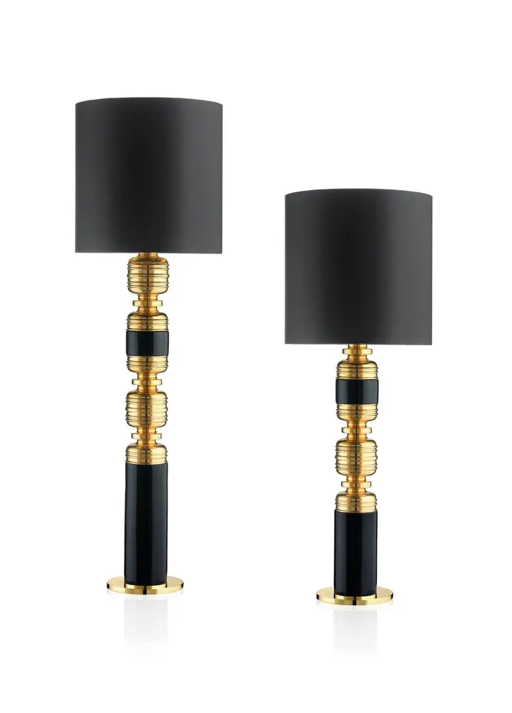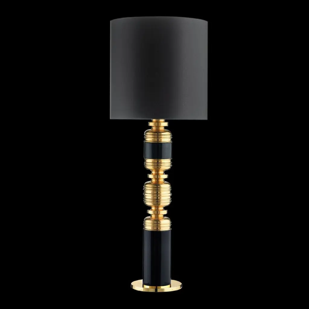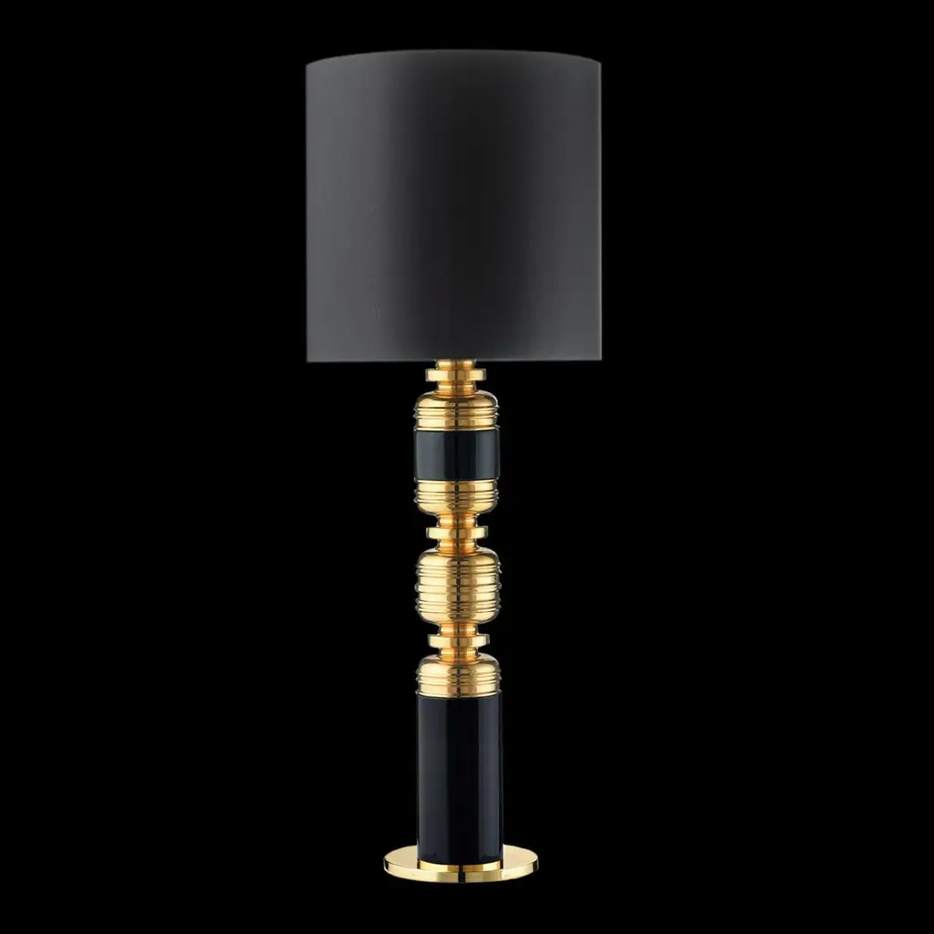 Ceramic lamp THEA 4 handcrafted in 24-karat gold combined with black enamel with cotton lampshadecod. LT004Measures: H. 123.0 cm. - Dm. 40.0 cm.