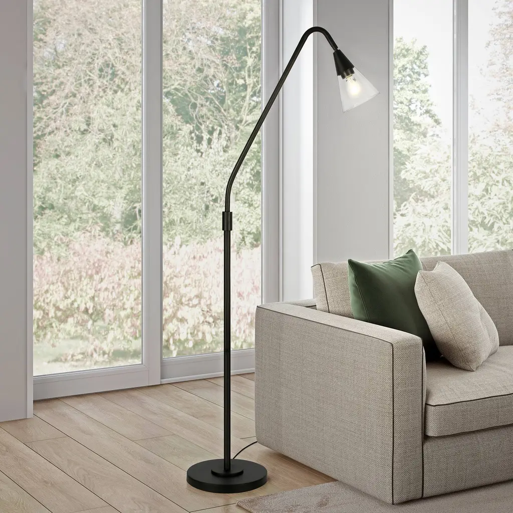 A handmade seeded glass shade creates a warm glow in your living room, bedroom, office, or dining room and brings a modern farmhouse appeal to your home. This floor lamp is crafted from steel and is a great addition to any home looking for an industrial-inspired illumination.The black metallic base adds a hint of industrial style making this a versatile floor lamp. Features: • Premium materials have been used making this lamp: glass in the shade, steel in the frame and base, UL certified wiring components. And the finishes are hand done: the brass finish is a rich brushed brass finish, the blackened bronze finish is a deep dark brown that is nearly black to the eye. • It is paired with a dome shape shade • This shade is made of glass. • Rated for one 60W incandescent bulb; 9W LED bulb, 13W fluorescent (CFL) bulb, or 9W self-ballasted LED bulb. E26-base bulb. • Includes an 8 ft. cord. • Clean with a soft, dry cloth; no harsh chemicals or abrasive cleaning materials. Compatibility: • Compatible with smart light bulbs such as Philips Hue, LIFX, IOTTY, Texsens, Flux, Samsung SmartThings, WiZ, and C by GE. Bulb is not included.