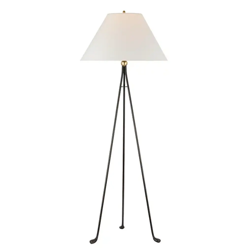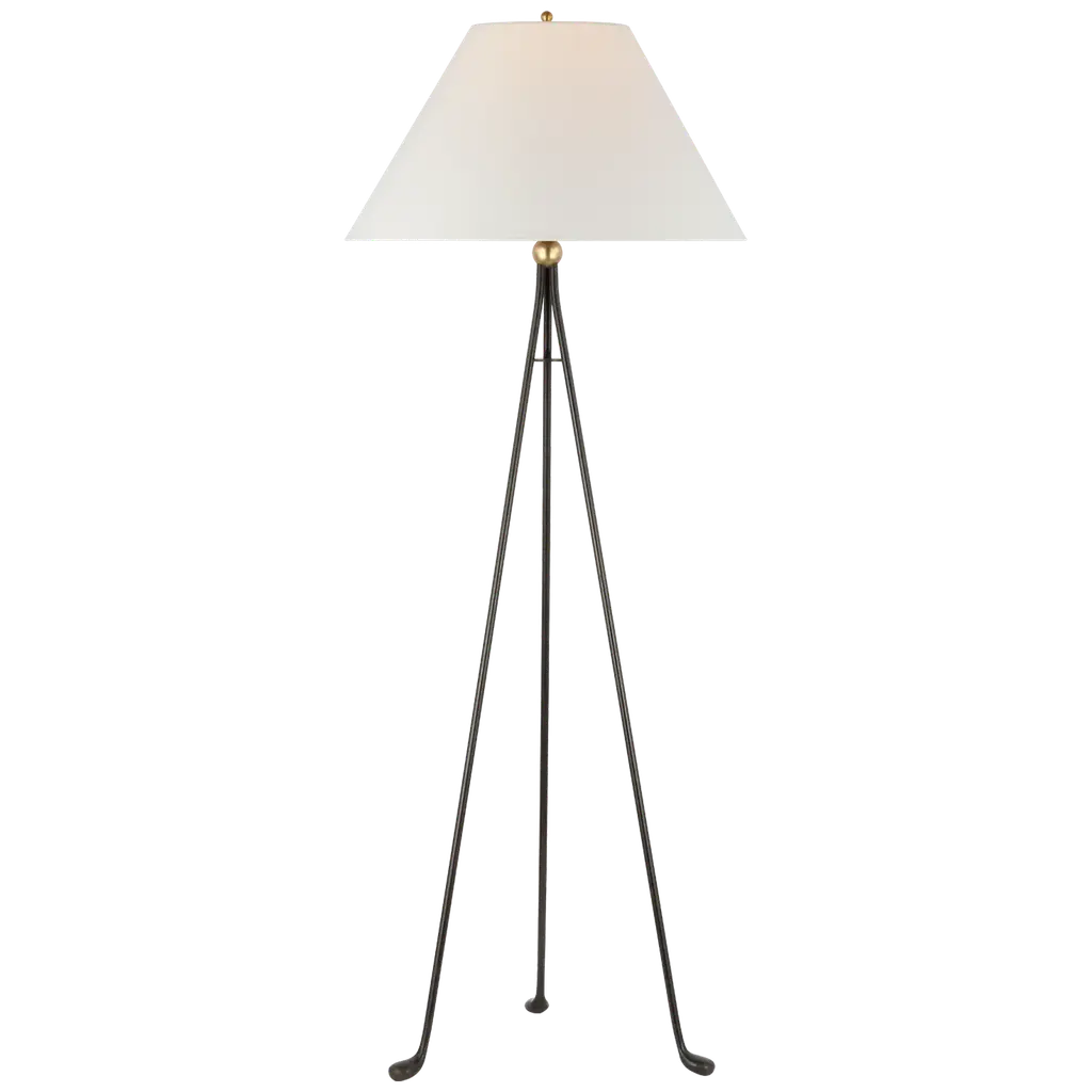 Champalimaud For Visual Comfort Signature Valley Medium Tripod Floor Lamp In Aged Iron And Gild With Linen Shade