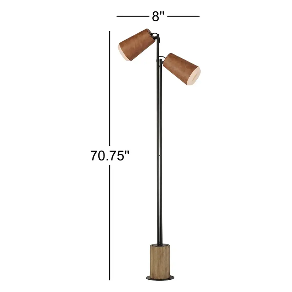 Rugged brown leather shades are stitched and snugly fit over softly angled conical forms to create a rustic and warm lighting resource. Sturdy bases of cylindrical distressed wood add a natural element with countryside appeal. Adjustable joints on the portable floor lamp allow you to direct the lighting where needed for function while the pendants use glass internally to reveal the leather's delightful inherent qualities in the glow from the lamp.