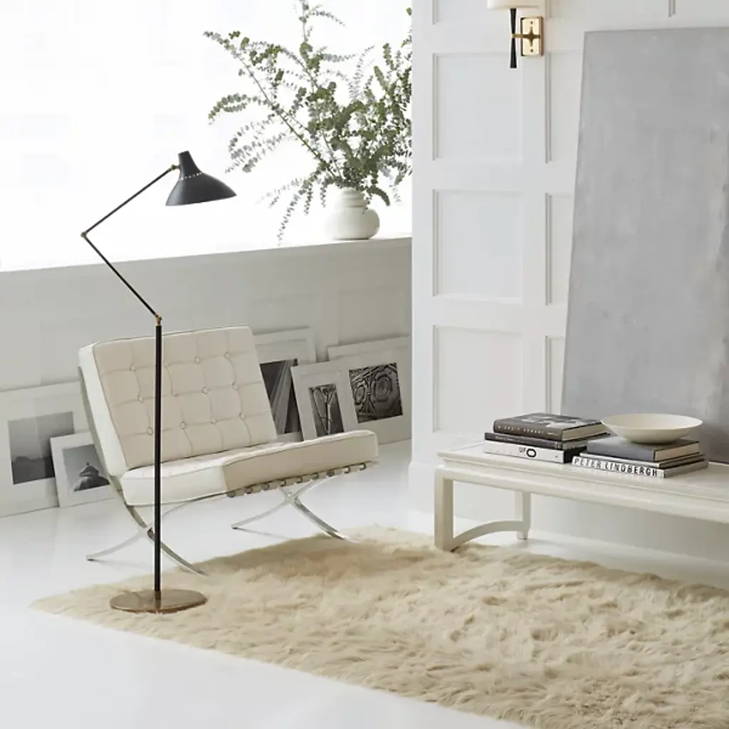 With its slim, adjustable design, the Charlton Floor Lamp by Visual Comfort Signature, formerly known as Visual Comfort, offers convenient lighting for a variety of settings. It consists of a rounded metal base from which a tall stem extends up to an artisan-cut shade. The stem provides three separate joints by which you can position the light where you need it most. Contrasting finishes segment the fixture beautifully, adding a decorative flourish to complement its versatile function.